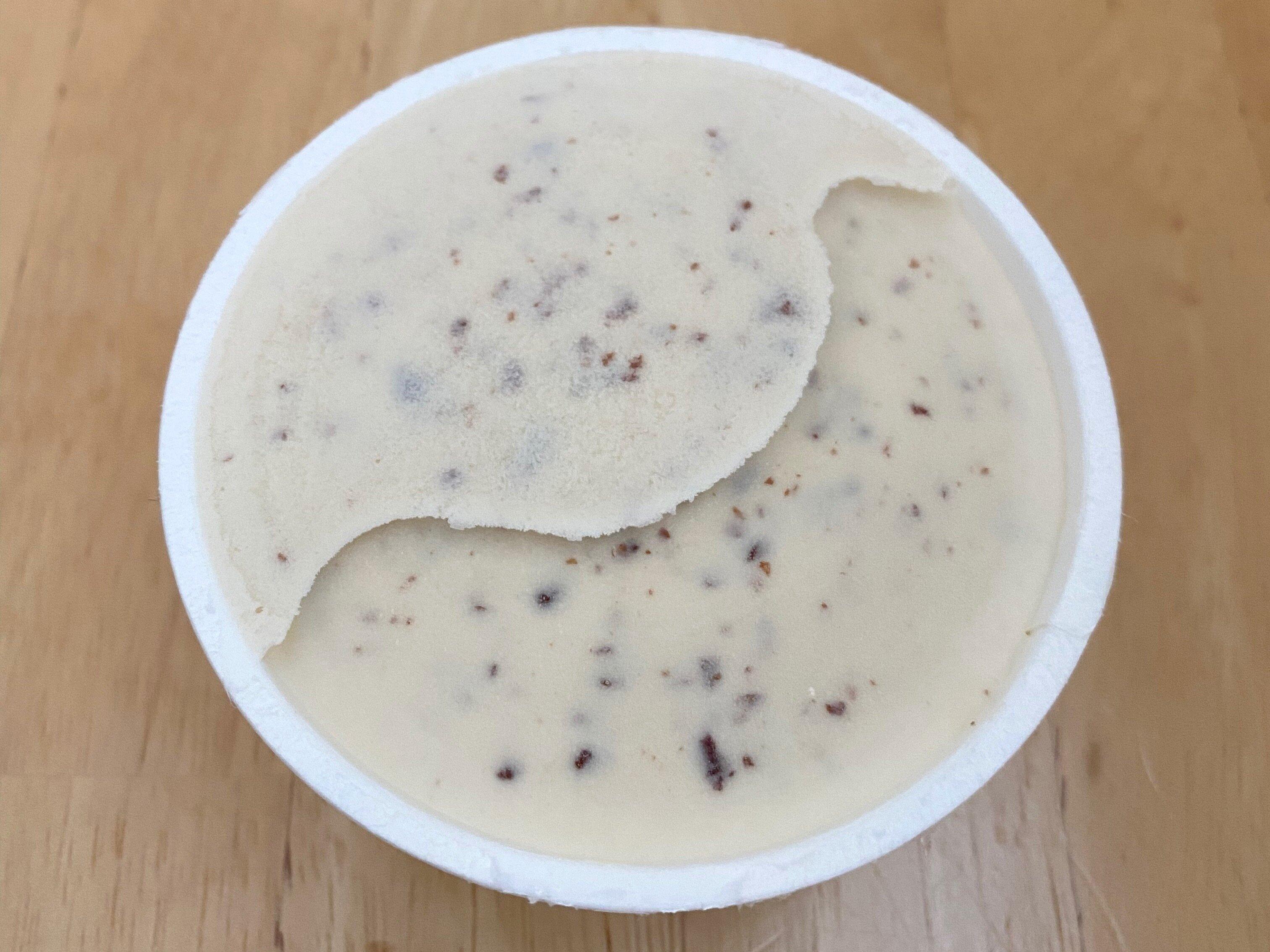 蓋を開けると一見普通のチョコチップアイスのように見えますが、掘り下げていくとどんどんチョコチップが出てきますよ〜!