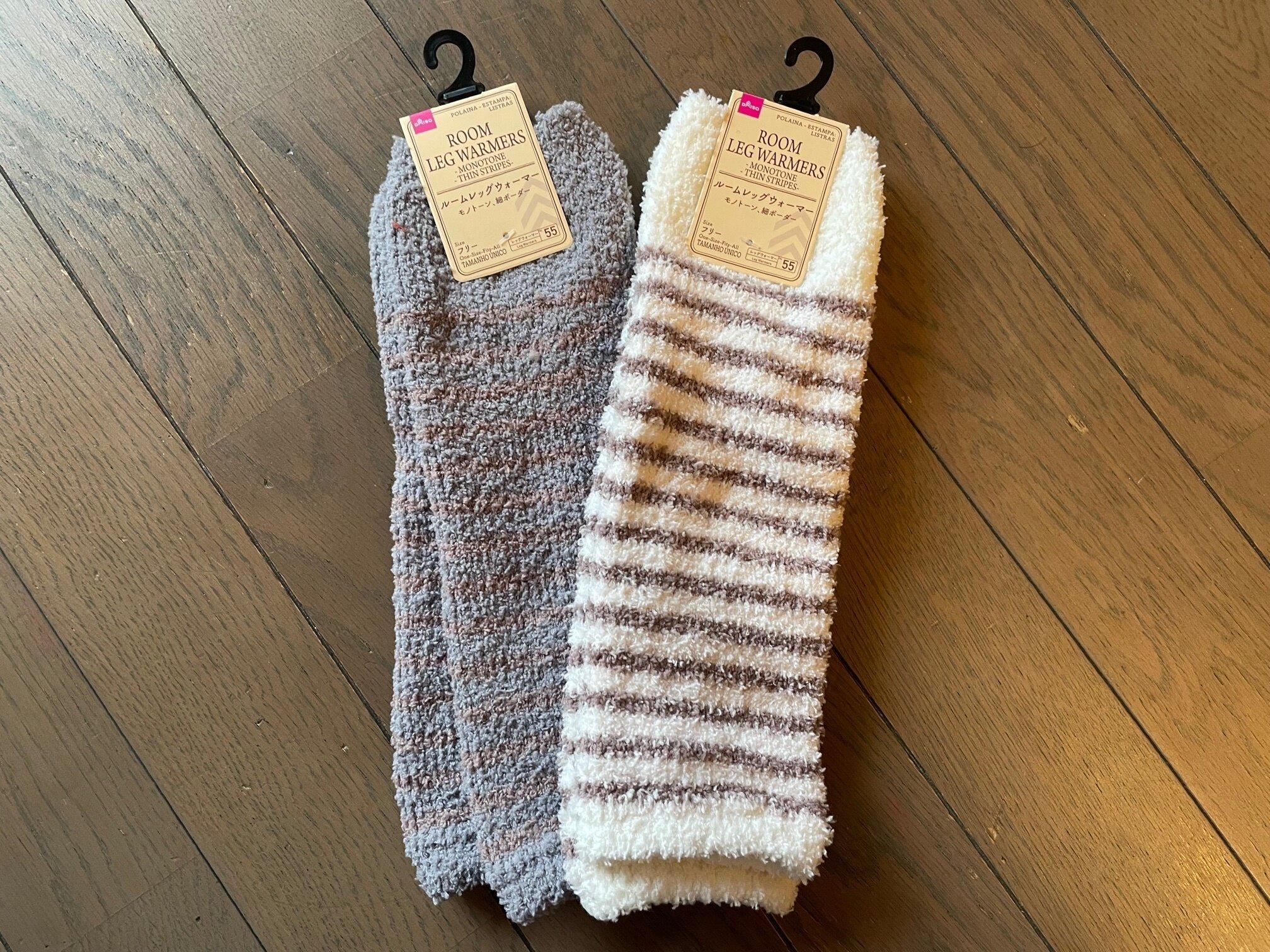 私のおすすめは、ダイソーの「ルームレッグウォーマー」もこもことかわいいだけでなく、締め付けもなく肌触りもいいのに1足110円!洗い替えなども揃えて毎日使えますよ。