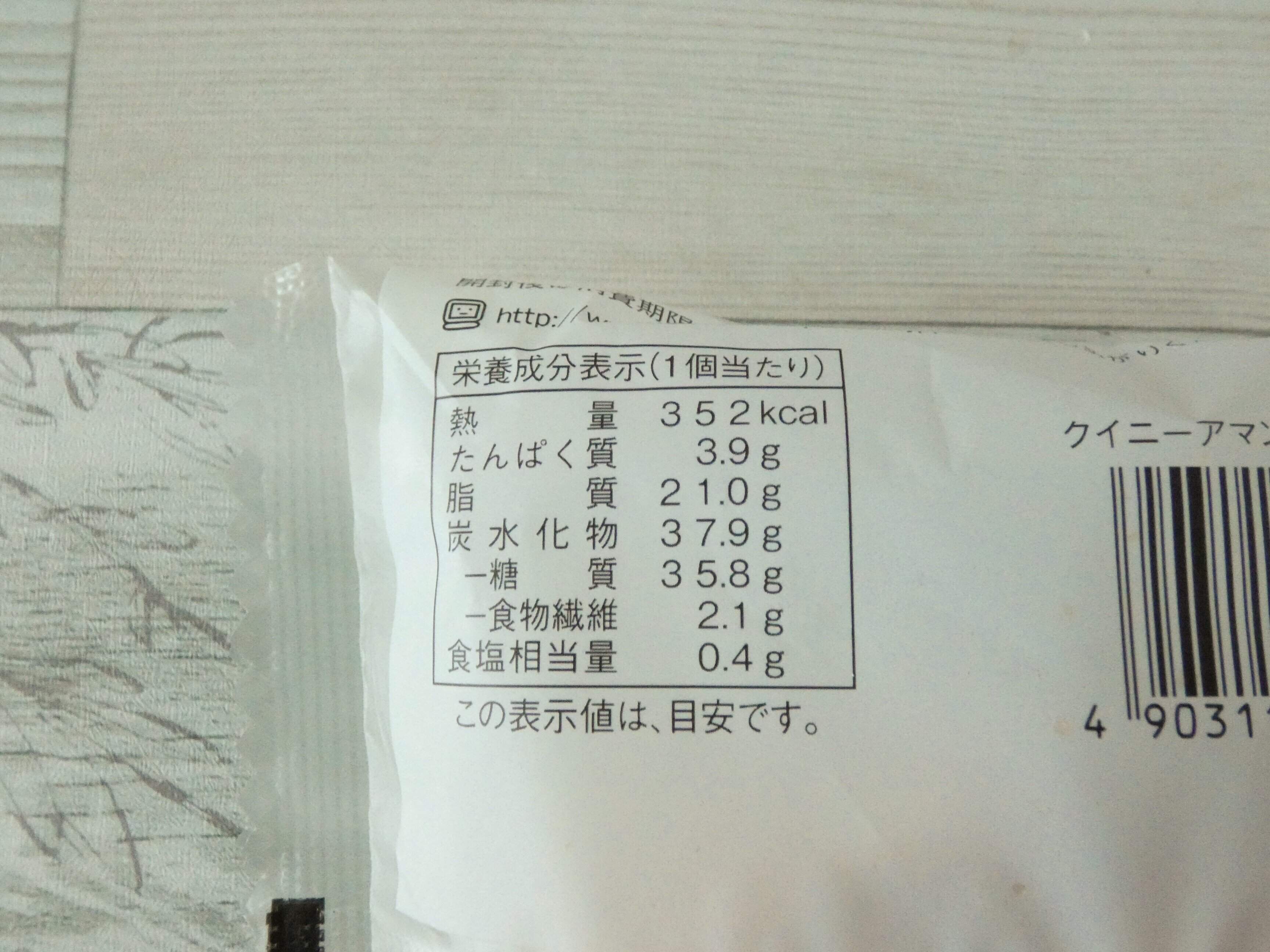 栄養成分表示を見ると1個のエネルギーは352kcalです。