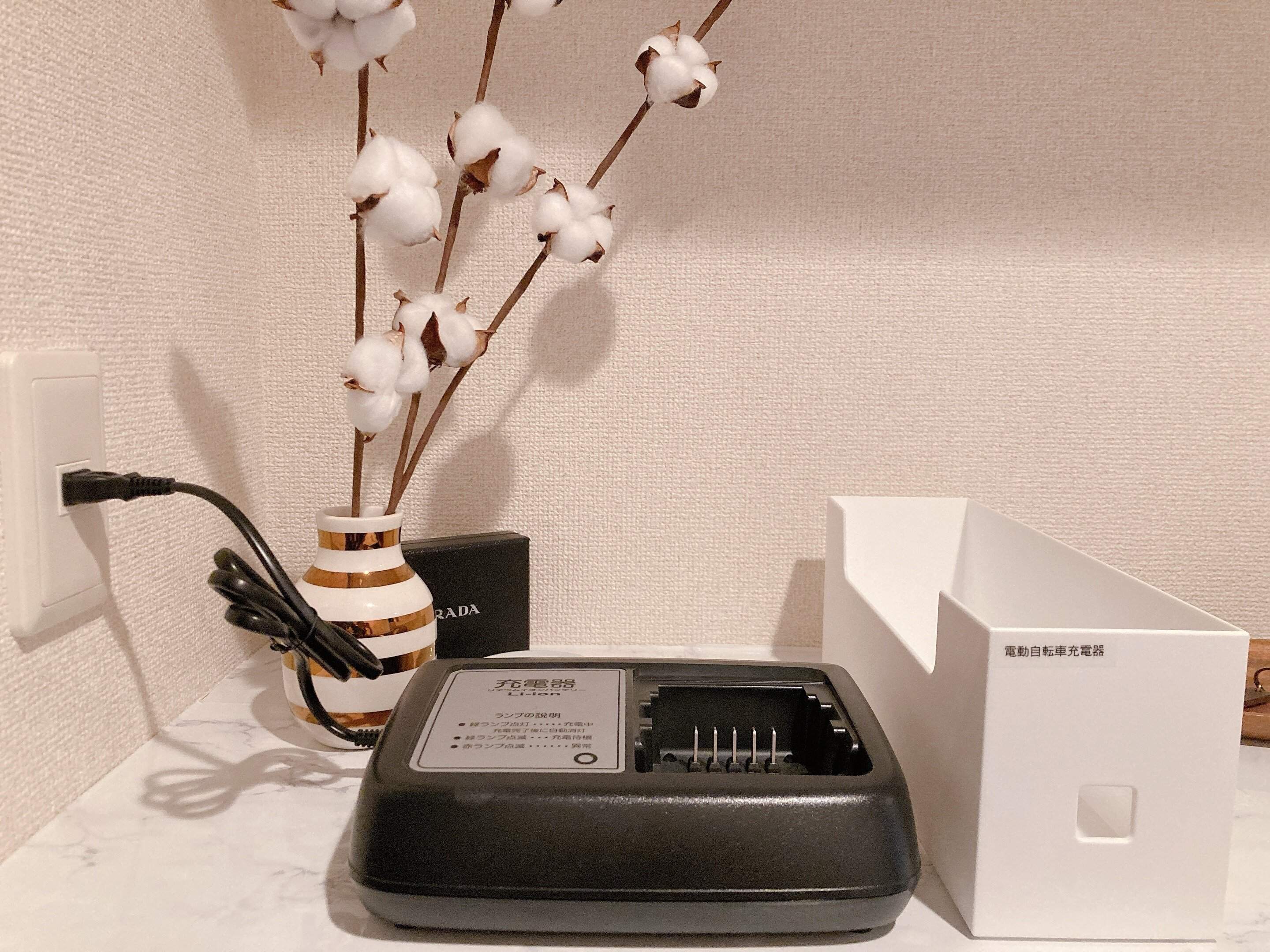充電器は玄関に収納し、ここで充電すればさすがに忘れることもなくなりました。万が一忘れても靴を脱がずに取ることができるのでダメージは最小限に。