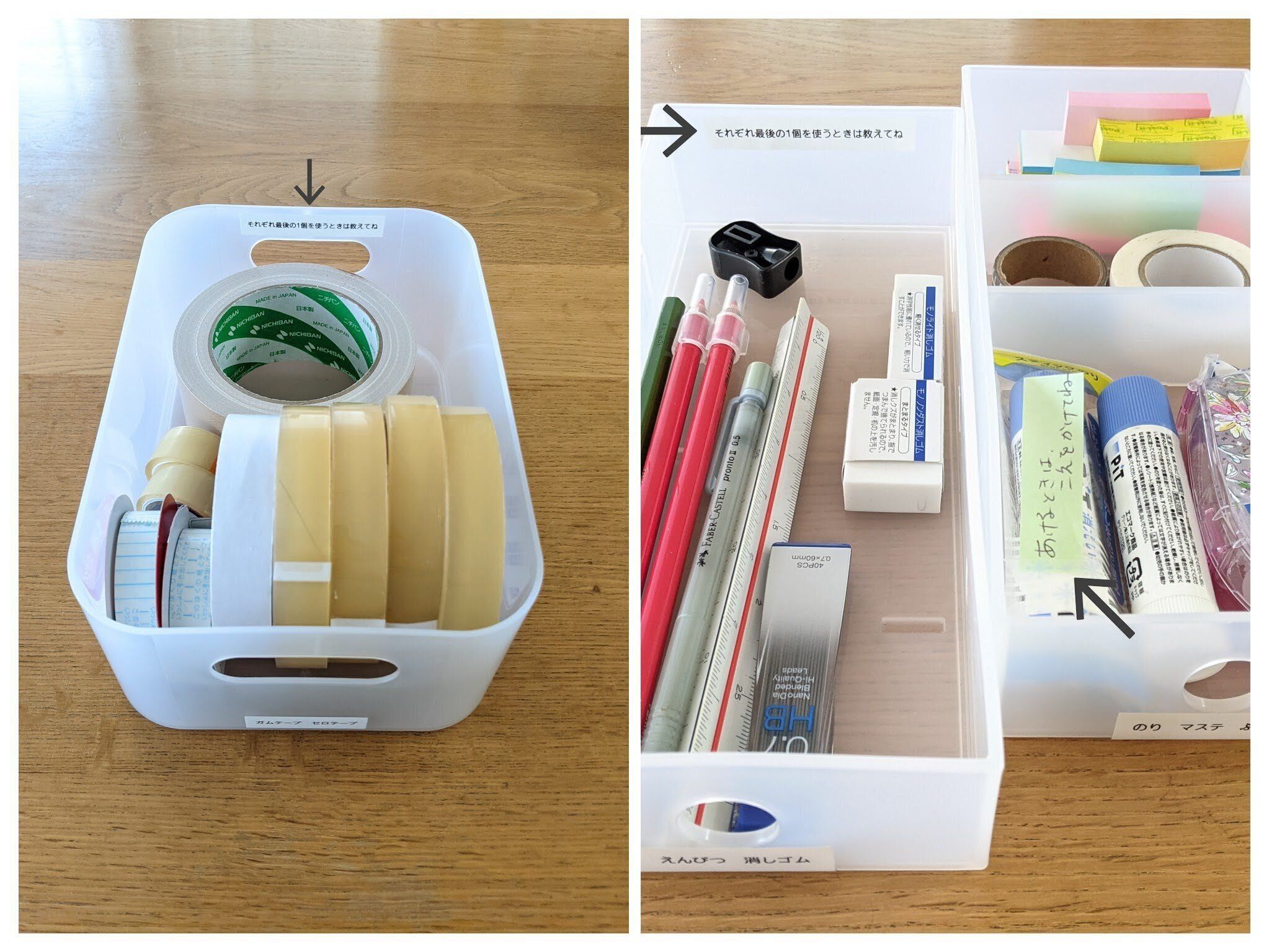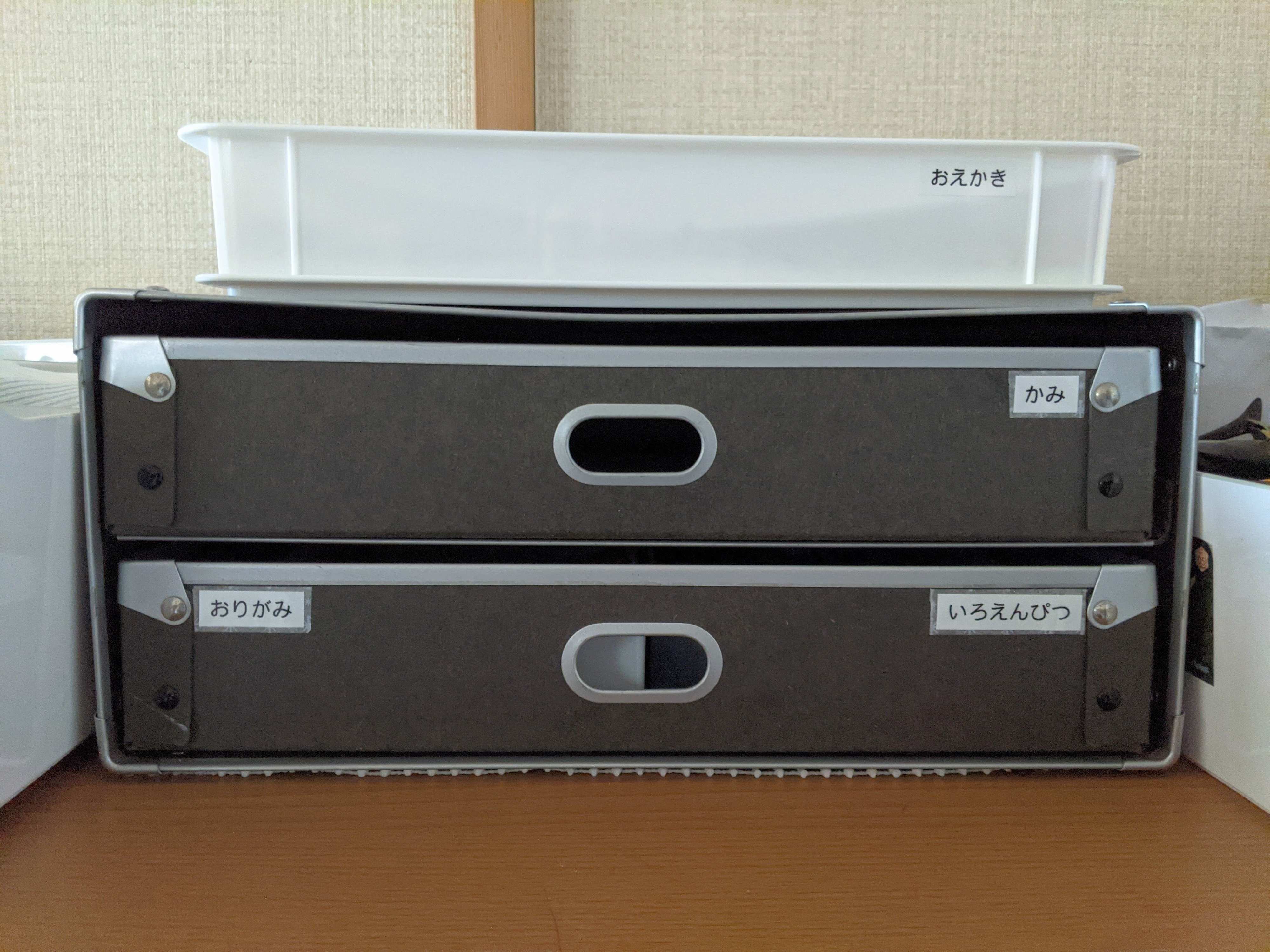 そこで、息子もよく使う紙や折り紙、絆創膏などはストック場所を2カ所に分けることにしました。
