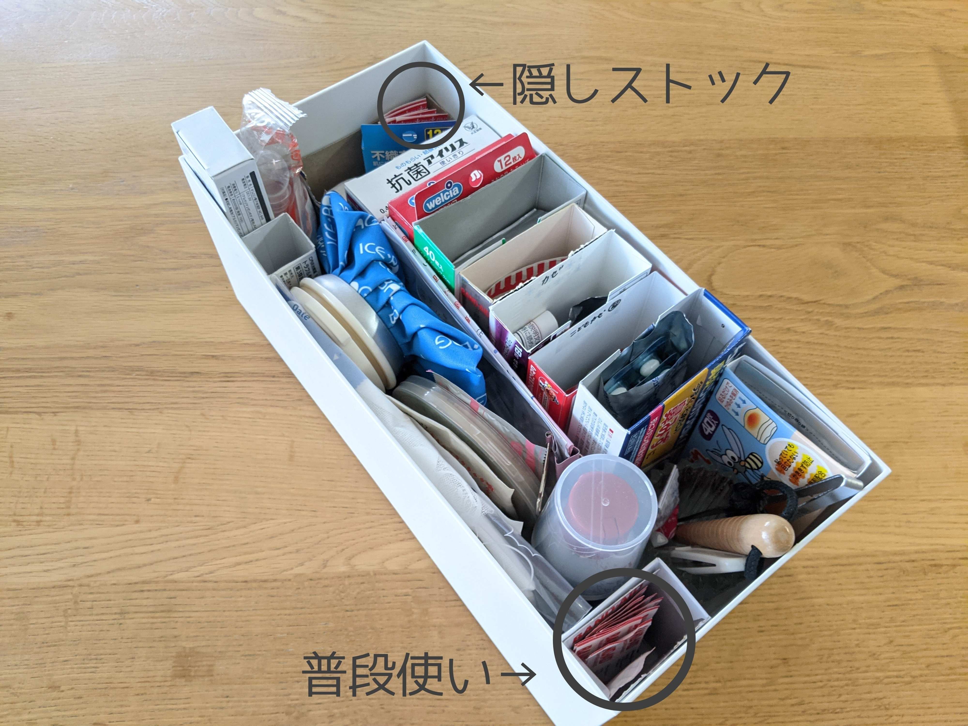 2.収納場所を2カ所に分け、隠しストックを持っておく