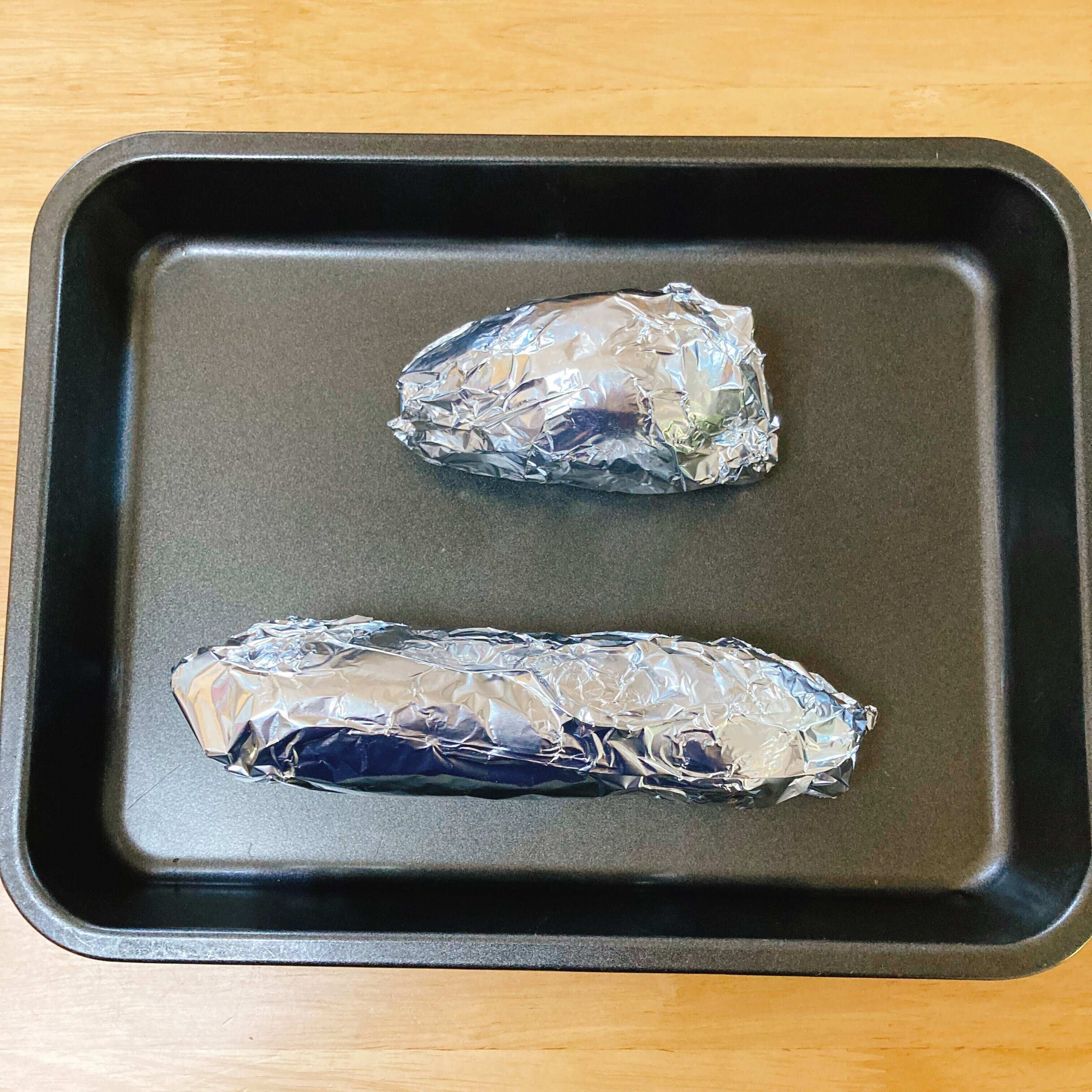 さつまいもをよく洗って、しっかりアルミホイルで包み
