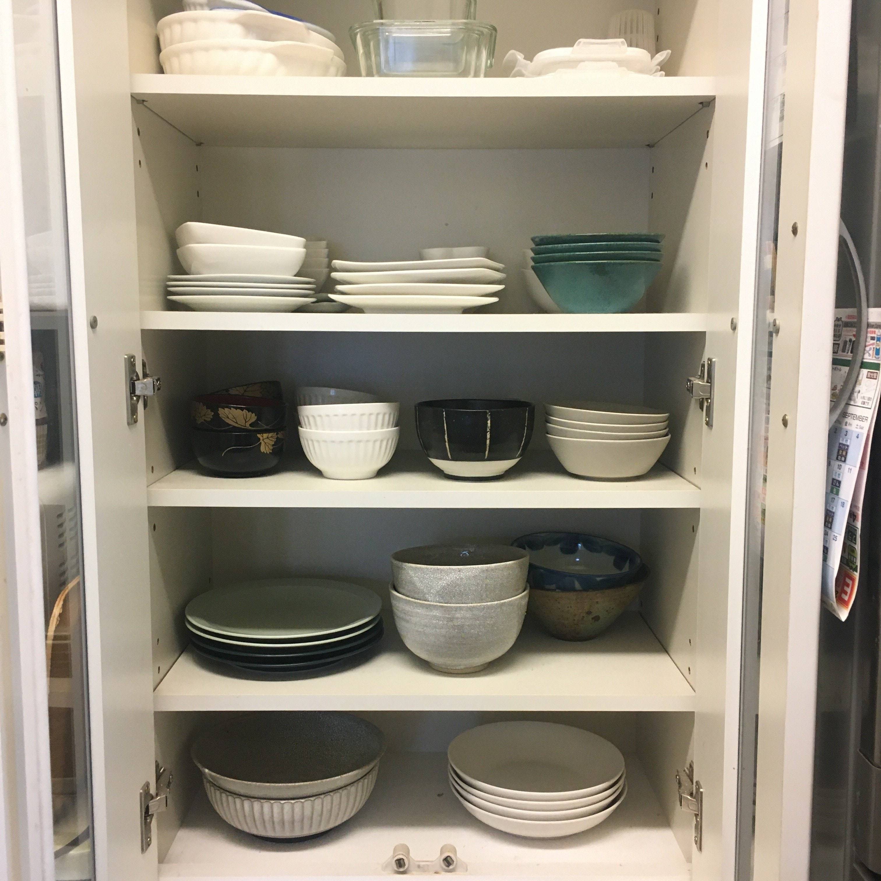 今では手が届く範囲にしかお皿は置かないと決め、取りやすい場所に必要な分だけ。大量のお皿を処分するうちに当たり前だと思って縛られていたしがらみから少しずつ解放されていくような気分になりました。