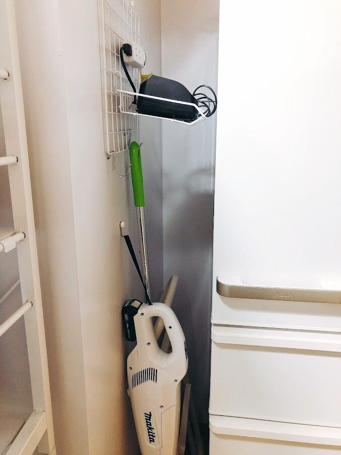我が家の場合は冷蔵庫と壁の間を掃除機の定位置に。