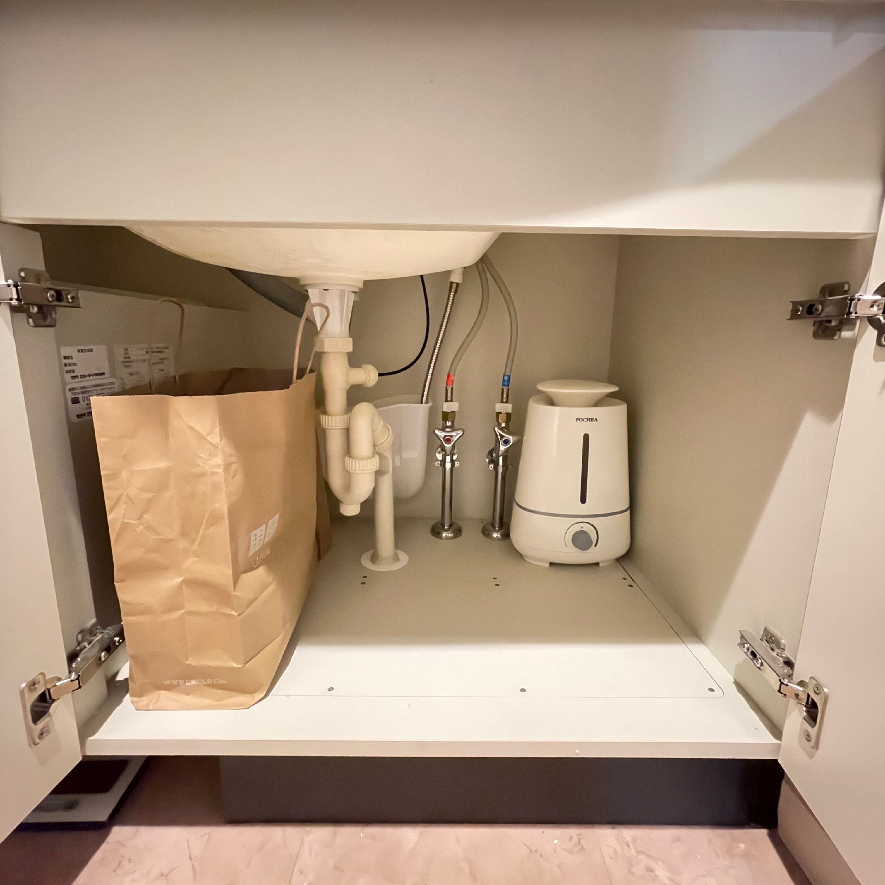 雑巾入れは紙袋にチェンジ。とても「映え収納」とはいえませんが、今のこのガランとしたゆとりある収納の方が気に入っています。苦手だった「洗面収納の整理」をすること自体を手放せてすっきりしました。