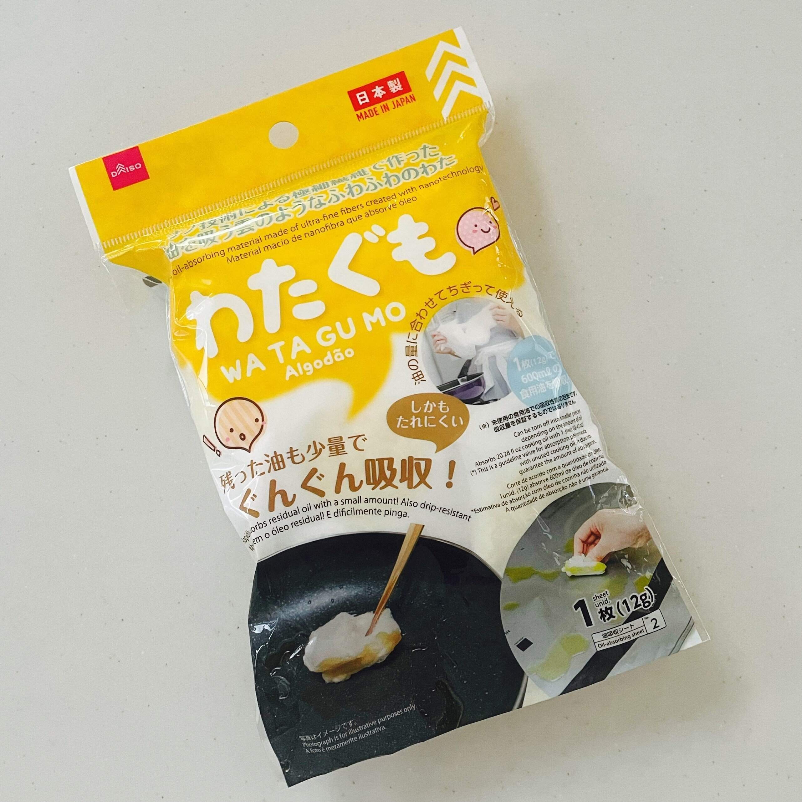 以前から発売になっている「わたぐも」という商品。フライパン内に残ったギトギトの油を吸収してくれるのですが、すごく人気でなかなか見かけない商品なんです。