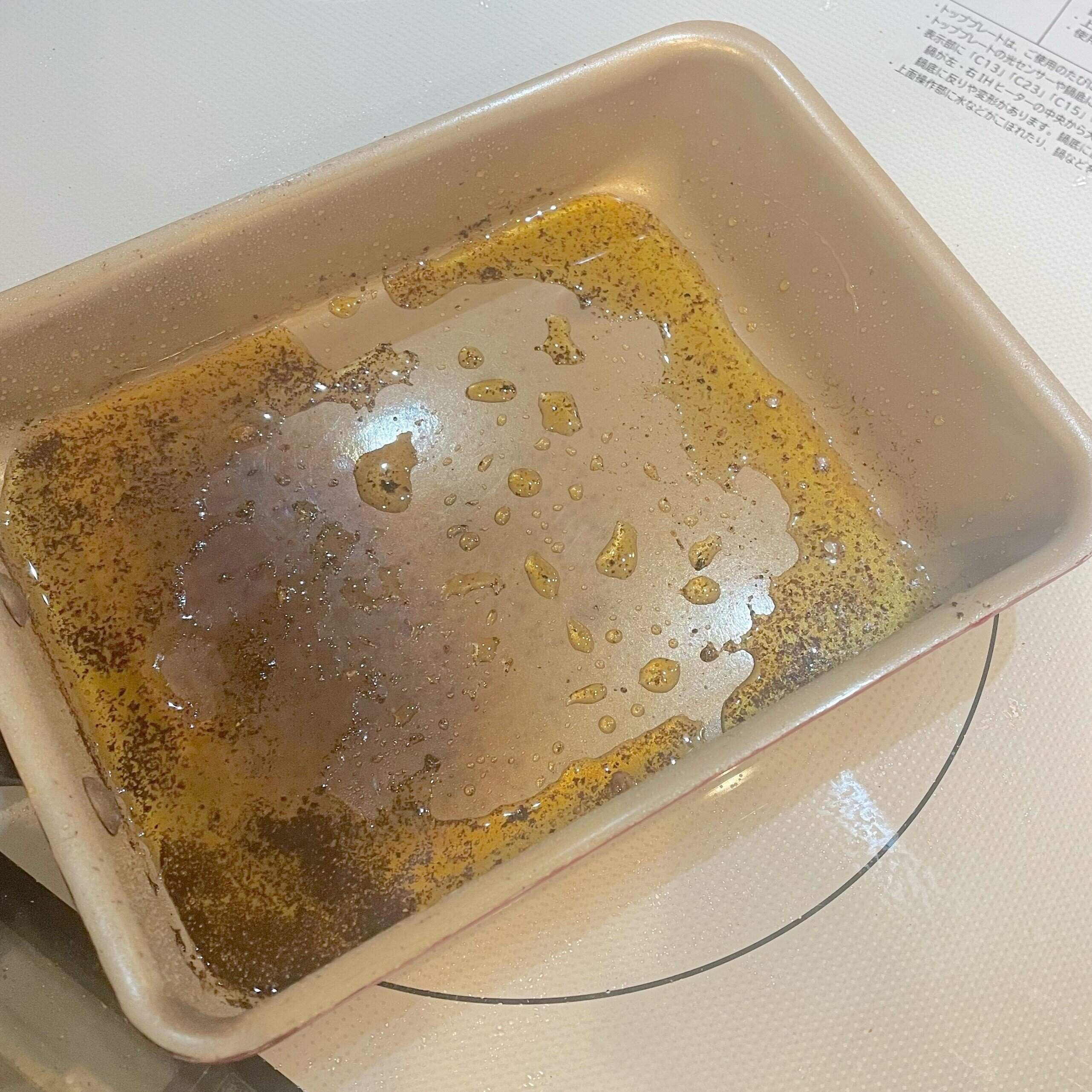 油で汚れたフライパンに投入!
