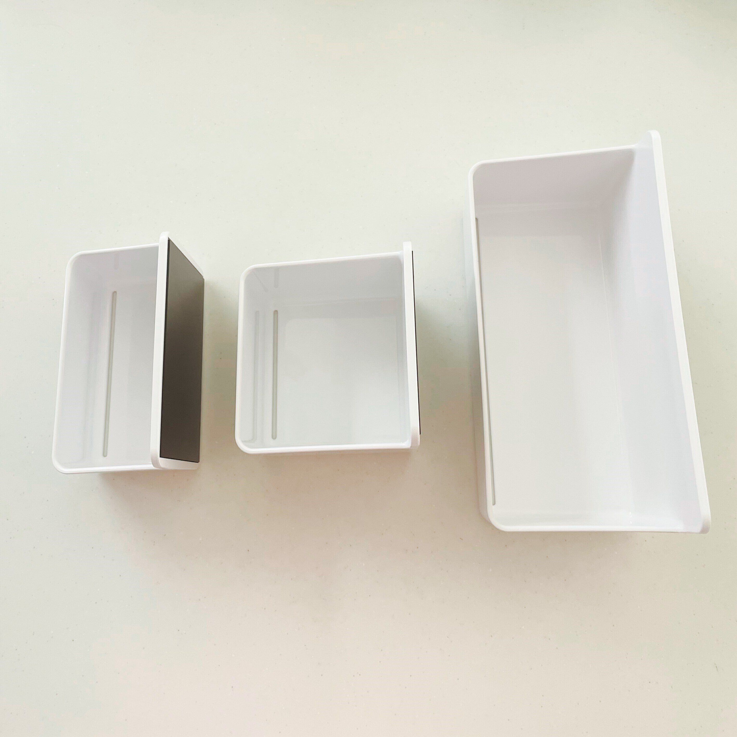 容器の裏側はこのように全面磁石になっているので、壁にピタッとくっついて安定感があります。
