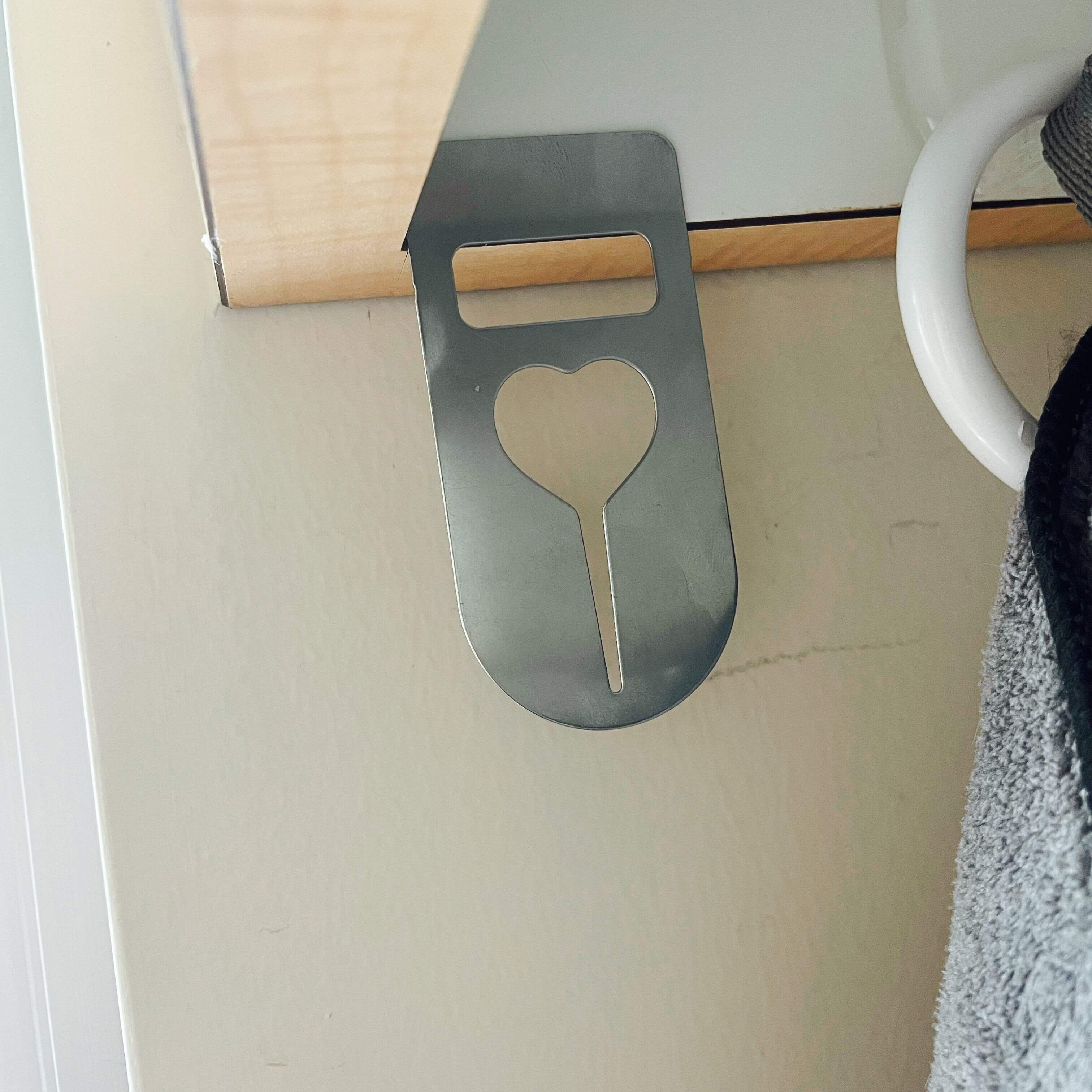 ハートの型抜きが印象的なステンレス製。シルバーの見た目が一瞬「栓抜き」と思うほどの見た目です。