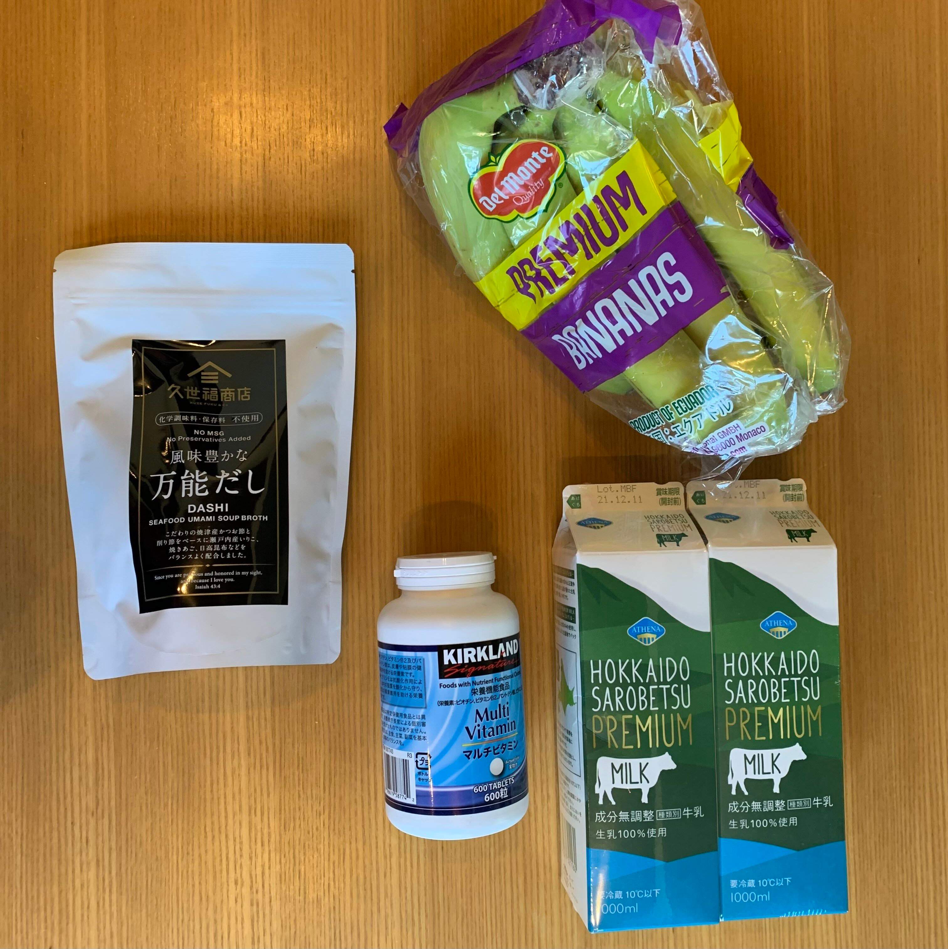同じく、だしパック、牛乳、マルチビタミン、バナナも消費量が多いので、まとめて購入します。