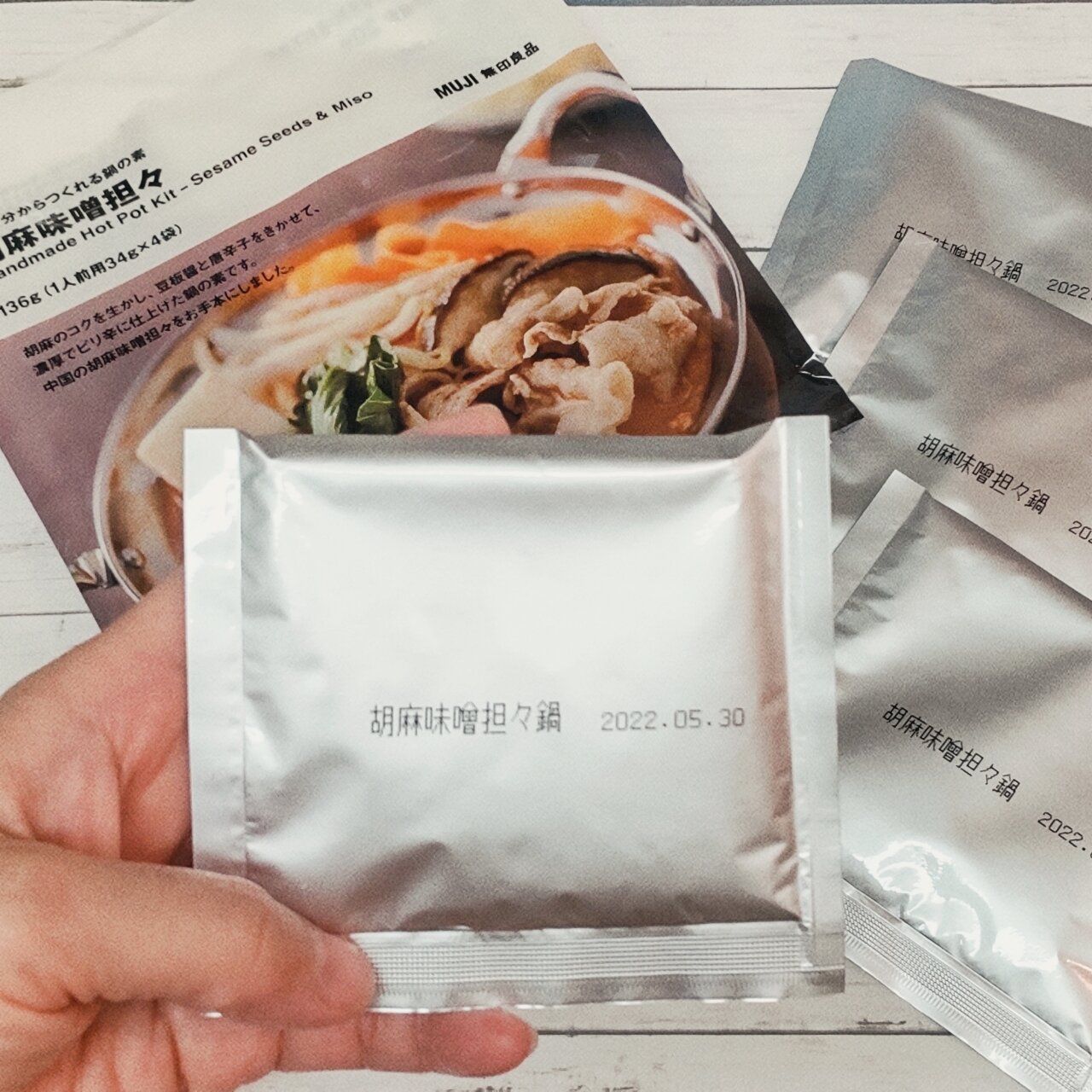 坦々スープは辛いので、水はレシピ記載の量の1.5倍いれて、ほどよい辛さに調節しました。辛いタイプの鍋は水量を変えて、好みの辛さに調節するのがオススメです。