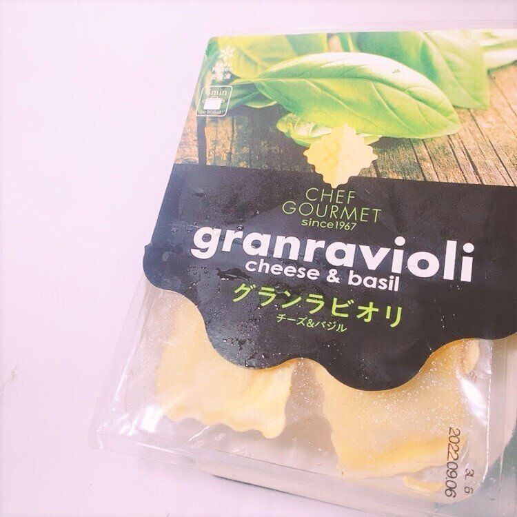 とはいえ、「美味しいものを食べたい」と思っているママに簡単にチーズをたっぷり味わえる「チーズ&バジルのグランラビオリ」を紹介します。