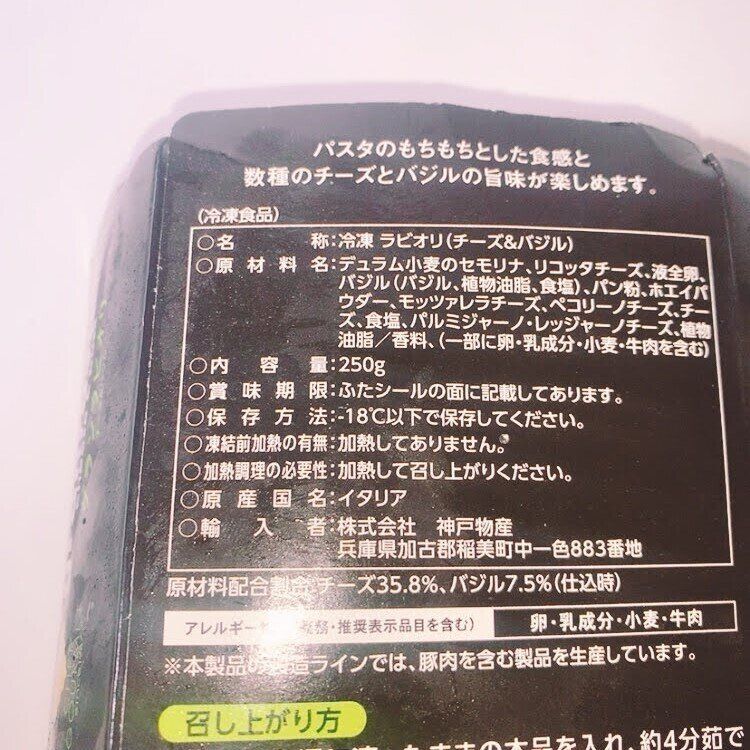 名称:冷凍ラビオリ(チーズ&バジル)