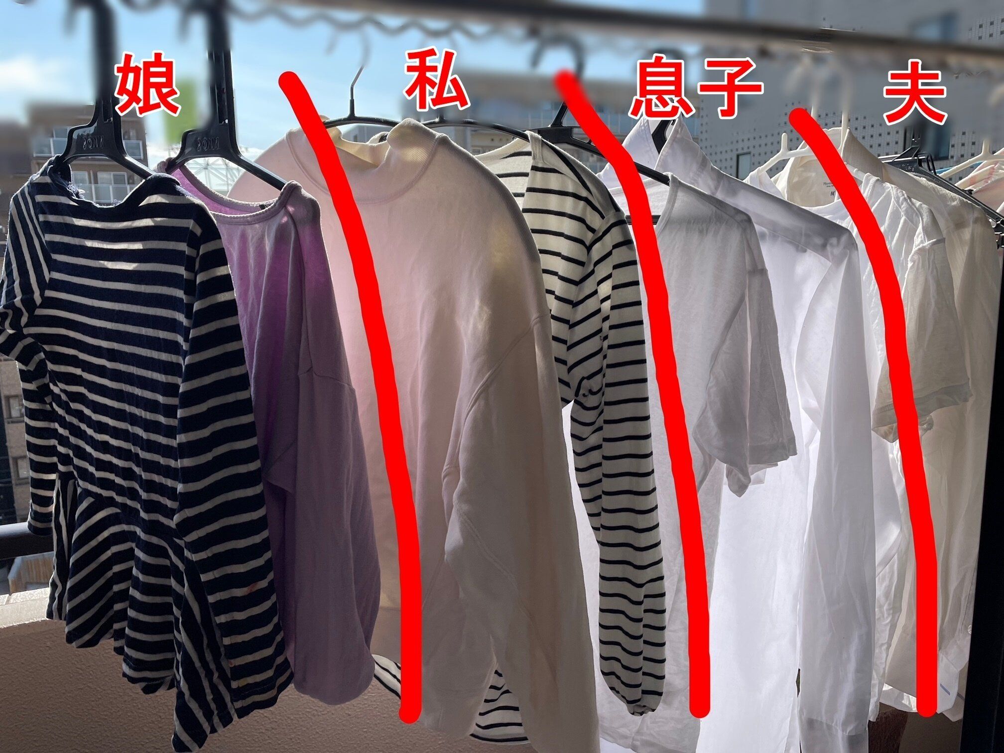 干すときは服の持ち主ごとに分ける