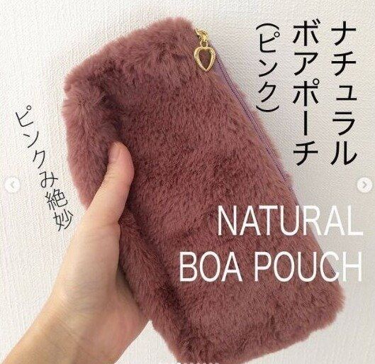 ピンクのくすみ感が絶妙なダイソーのふわもこポーチ。触り心地もなめらかでトゥルトゥル。収納力もしっかりとあるポーチなので、いろいろと使えそうですね。