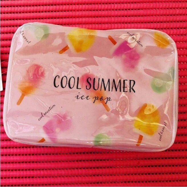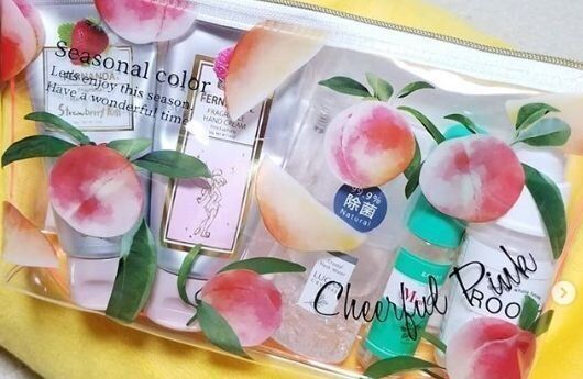 ピーチのイラストがかわいらしいビニールポーチ。中が見えるから、ポーチの中でものをなくすこともなくなりそうですね。ほかには、レモンの柄もあるようです。