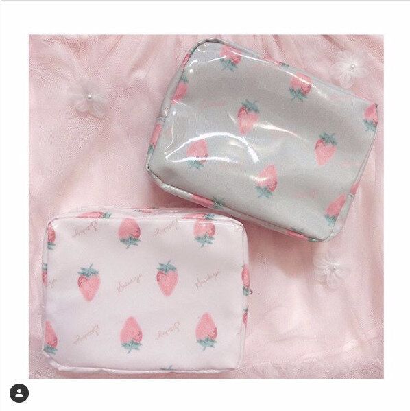 ジェラピケ風で乙女心くすぐる!いちご柄ポーチ