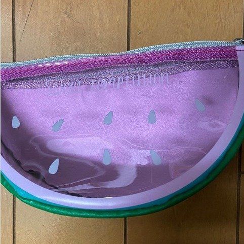夏が待ち遠しくなりそうなスイカ型のポーチは、とってもポップで持っているだけでテンションが上がりそう。ビニール製なので、洗面台などにちょこっと置いても大丈夫です。