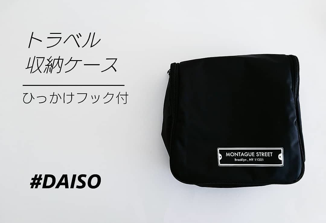 まるで無印良品のトラベルポーチ風のアイテムがダイソーから登場!ポーチにフックがついているので、吊るしたまま化粧品や小物を収納することができるポーチです。トラベルに便利ですが、洗面所などに吊るしておけばふだん使いにも便利ですね。