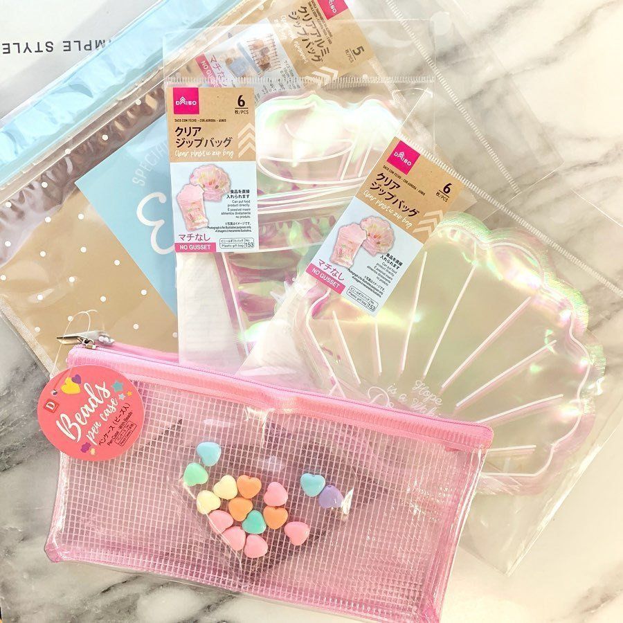 無印良品のマチつきクリアケースにそっくりの、ダイソーのビニールポーチ。お気に入りのコスメを見せる収納にしたり、スパポーチにしたりするのもおすすめ!