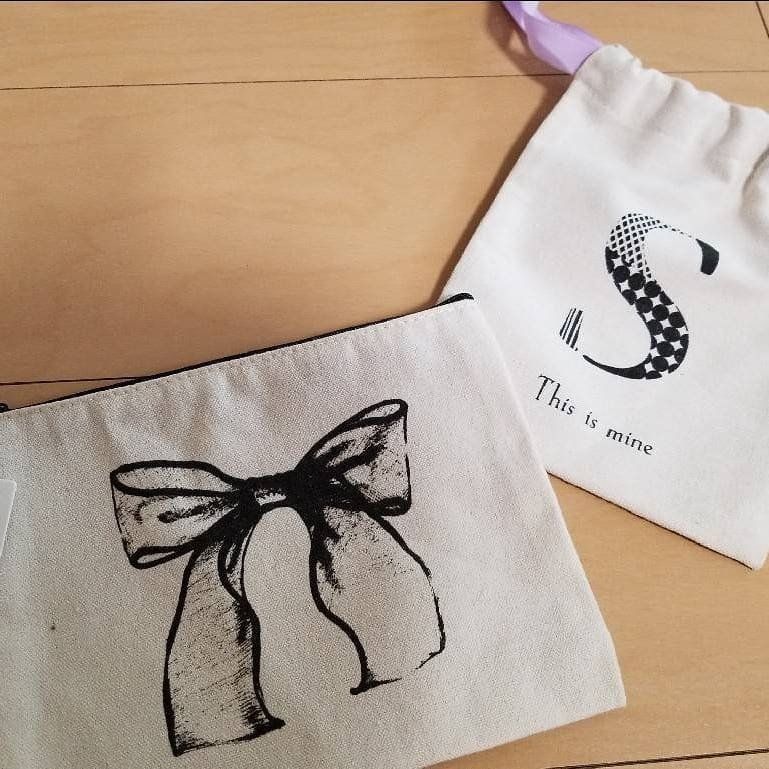 リボンのイラストが素敵な、大人かわいいダイソーのポーチです。キャンバス地でしっかりしたつくりで、リボンの巾着タイプとファスナータイプがあります。入れるものに合わせて、おそろいで使うのもいいですね。