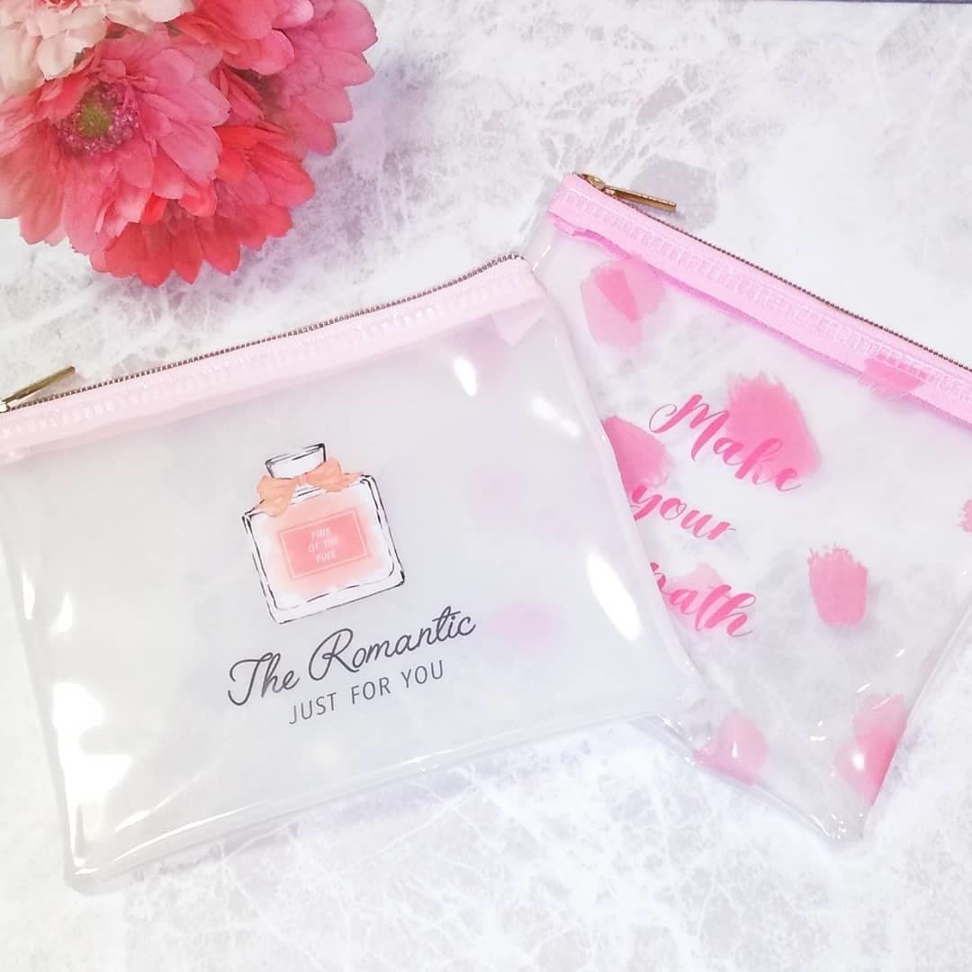 ピンクのガーリーデザイン!フラットクリアポーチ
