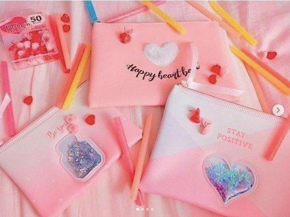 こちらは200円の商品になりますが、ダイソーのピンクのハート柄のポーチです。生地もしっかりしていて、たくさん入るそうです。とてもかわいいデザインですね。