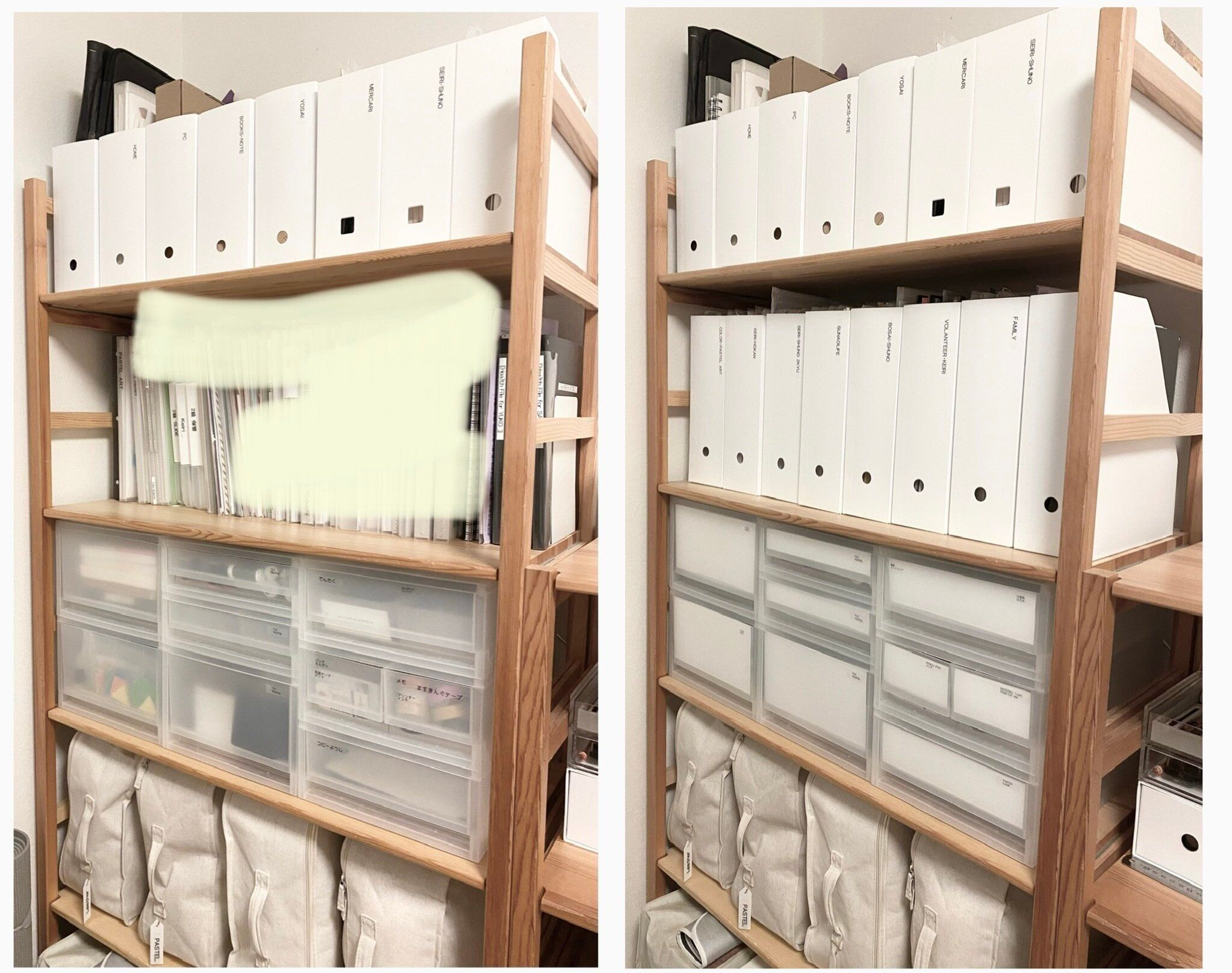 ファイルボックス利用前と利用後の写真を並べてみました。