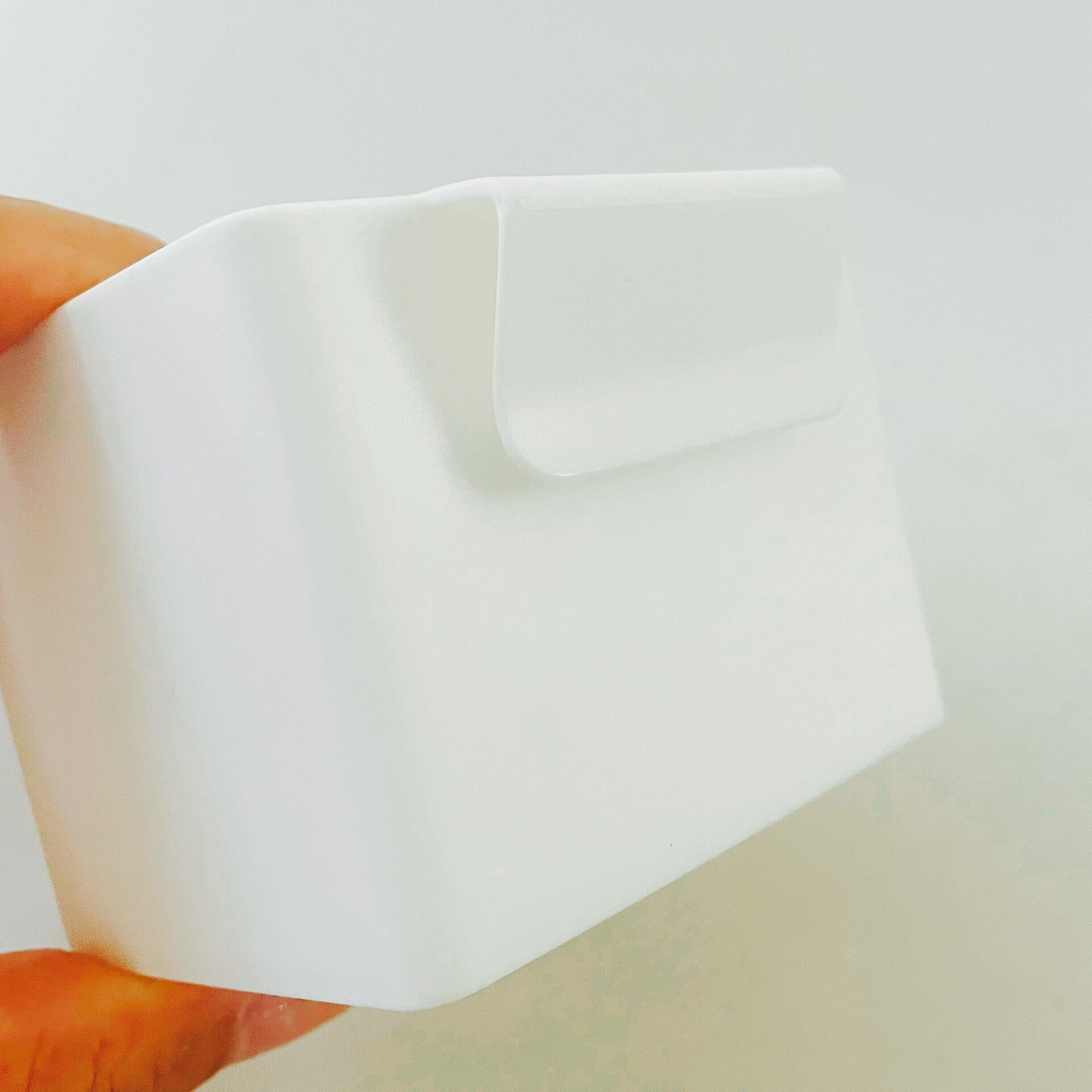 ケースの裏にフックが付いているので、このフックを冷蔵庫のドアポケットに引っ掛けて固定します。