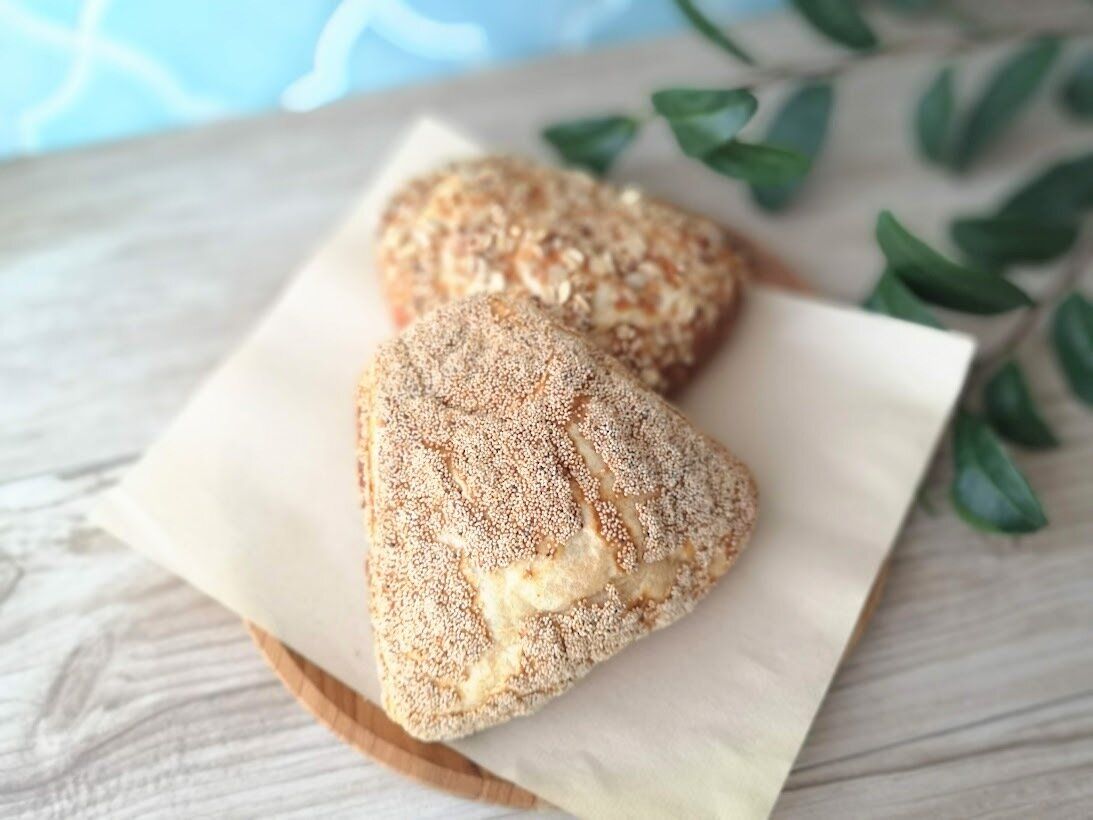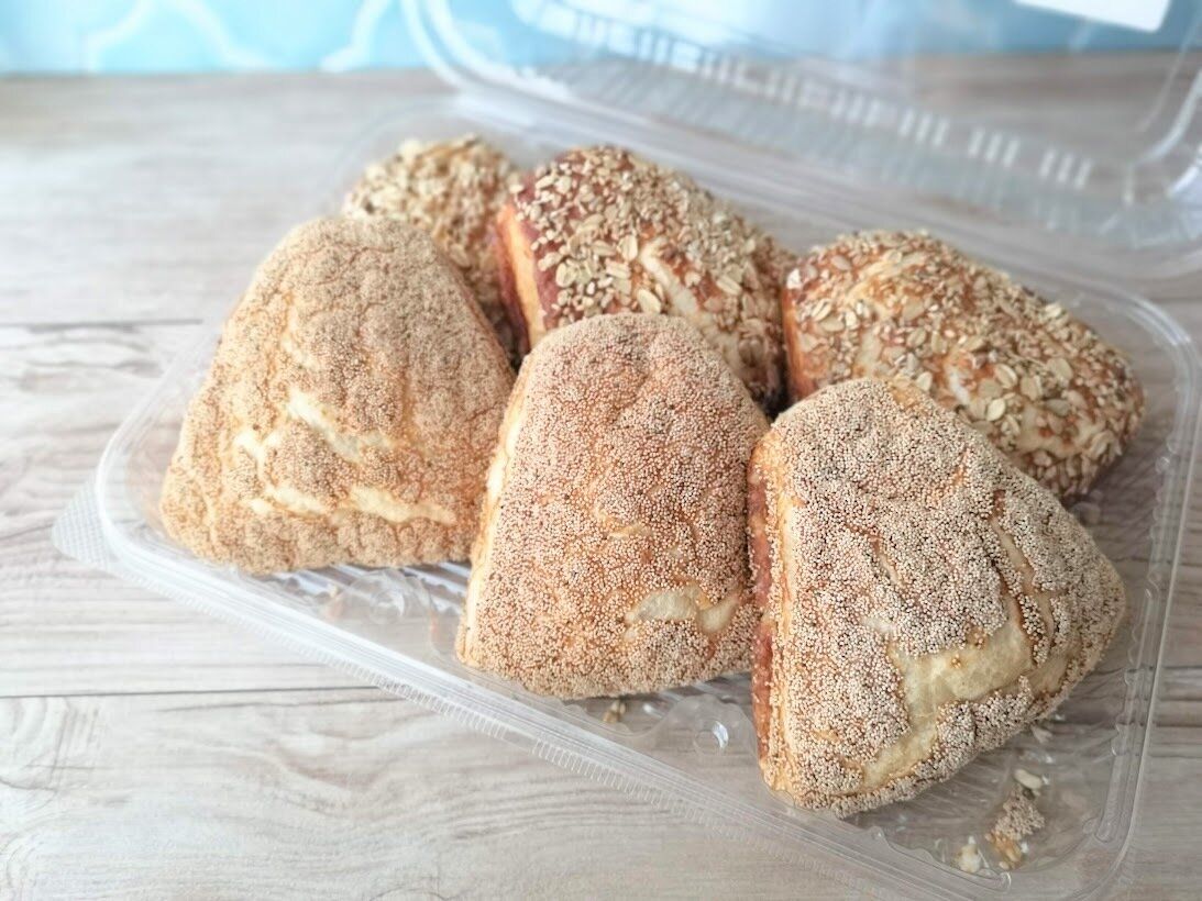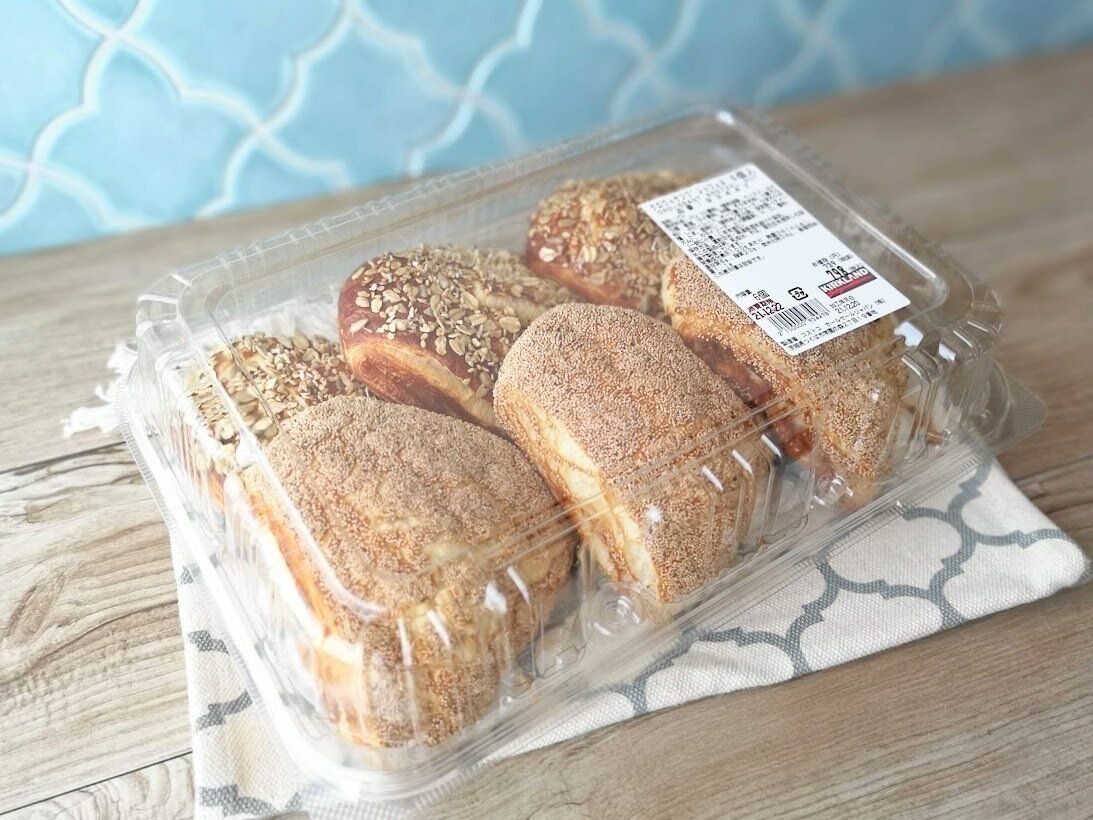 2種類のパンがそれぞれ3個ずつ入っていて、一つはポピーシードがたっぷりトッピングされ、もう一つは数種類の雑穀がトッピングされています。