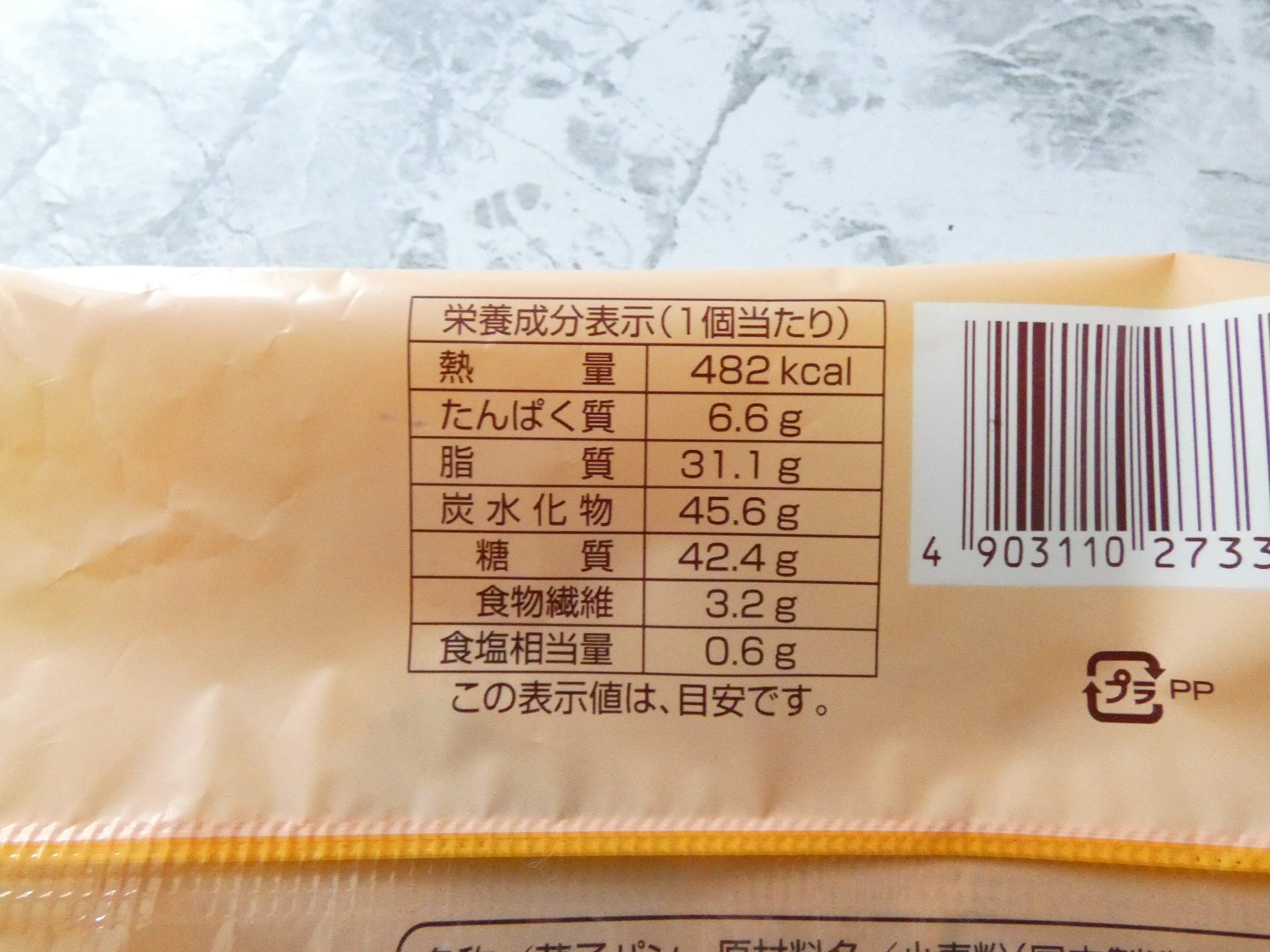 栄養成分表示を見ると1個のエネルギーは482kcal。パイ生地にチョコレートたっぷりなのでカロリーはかなり高めです。
