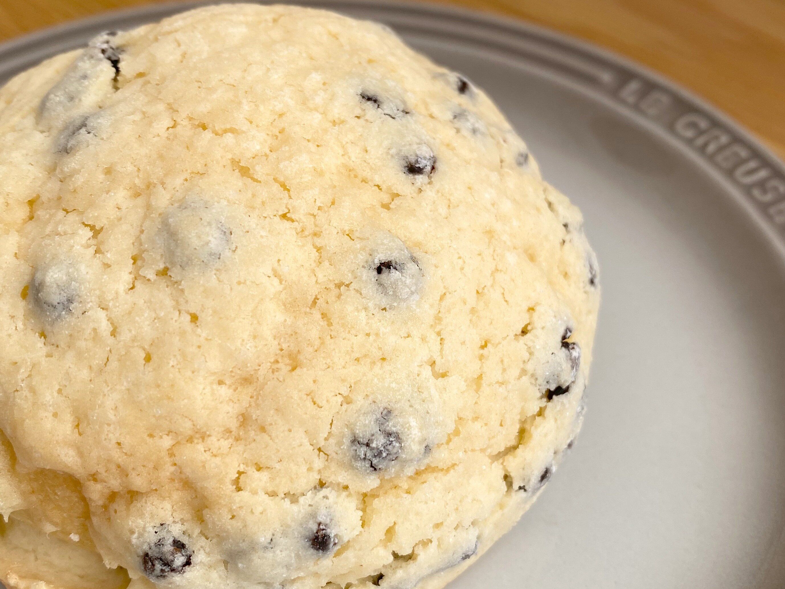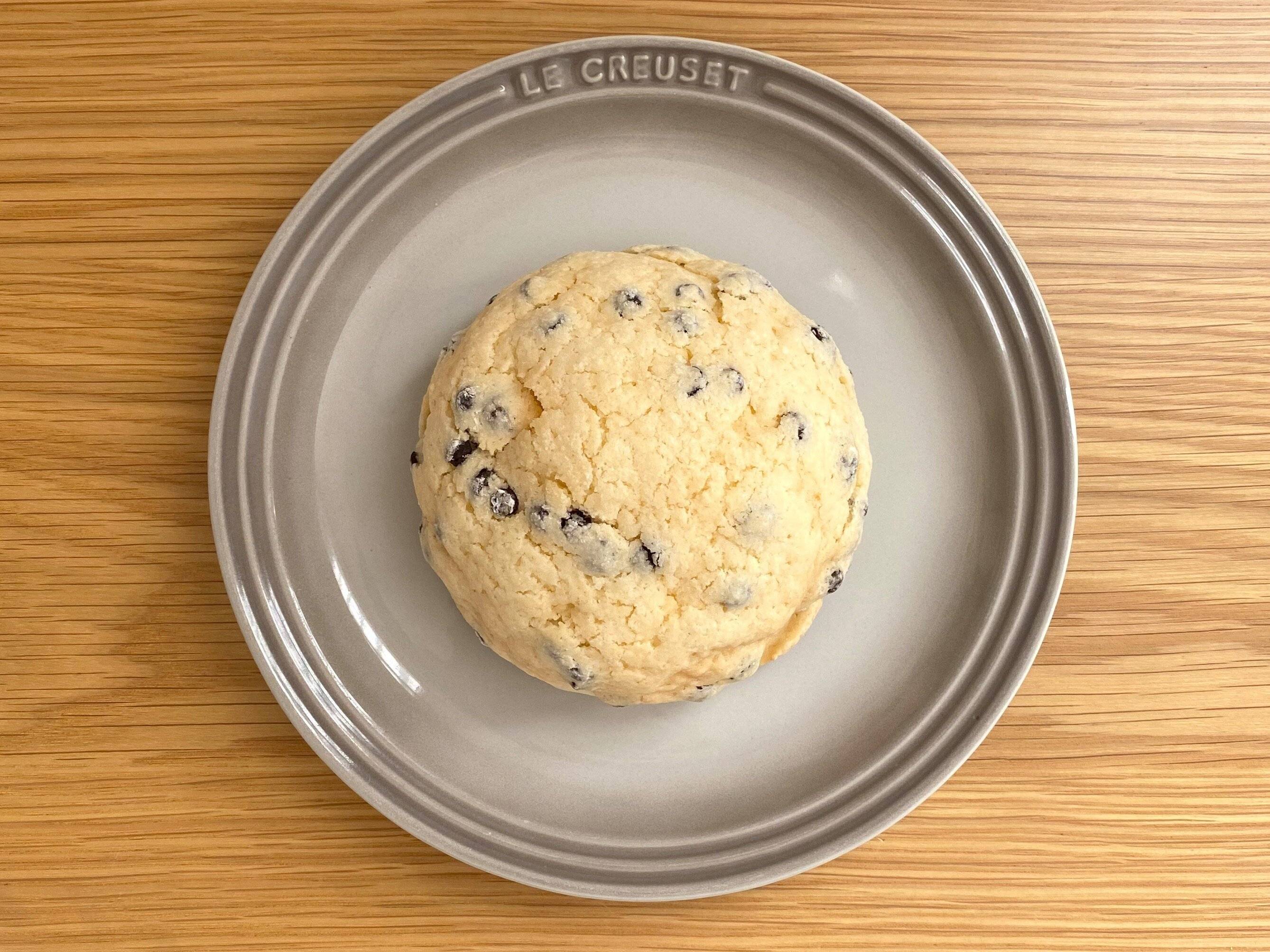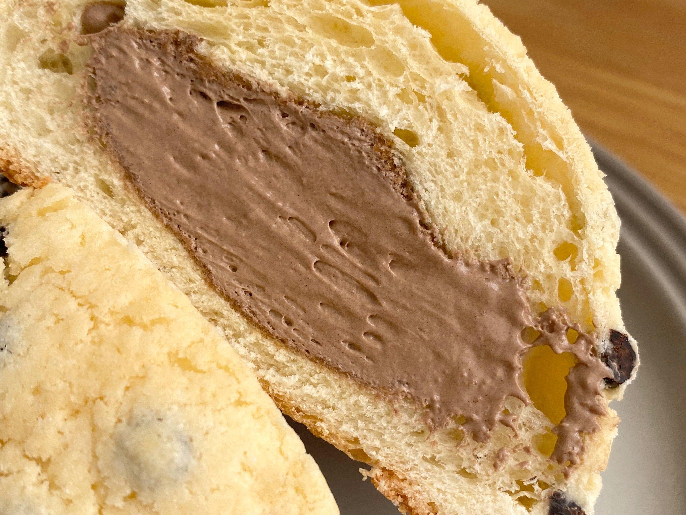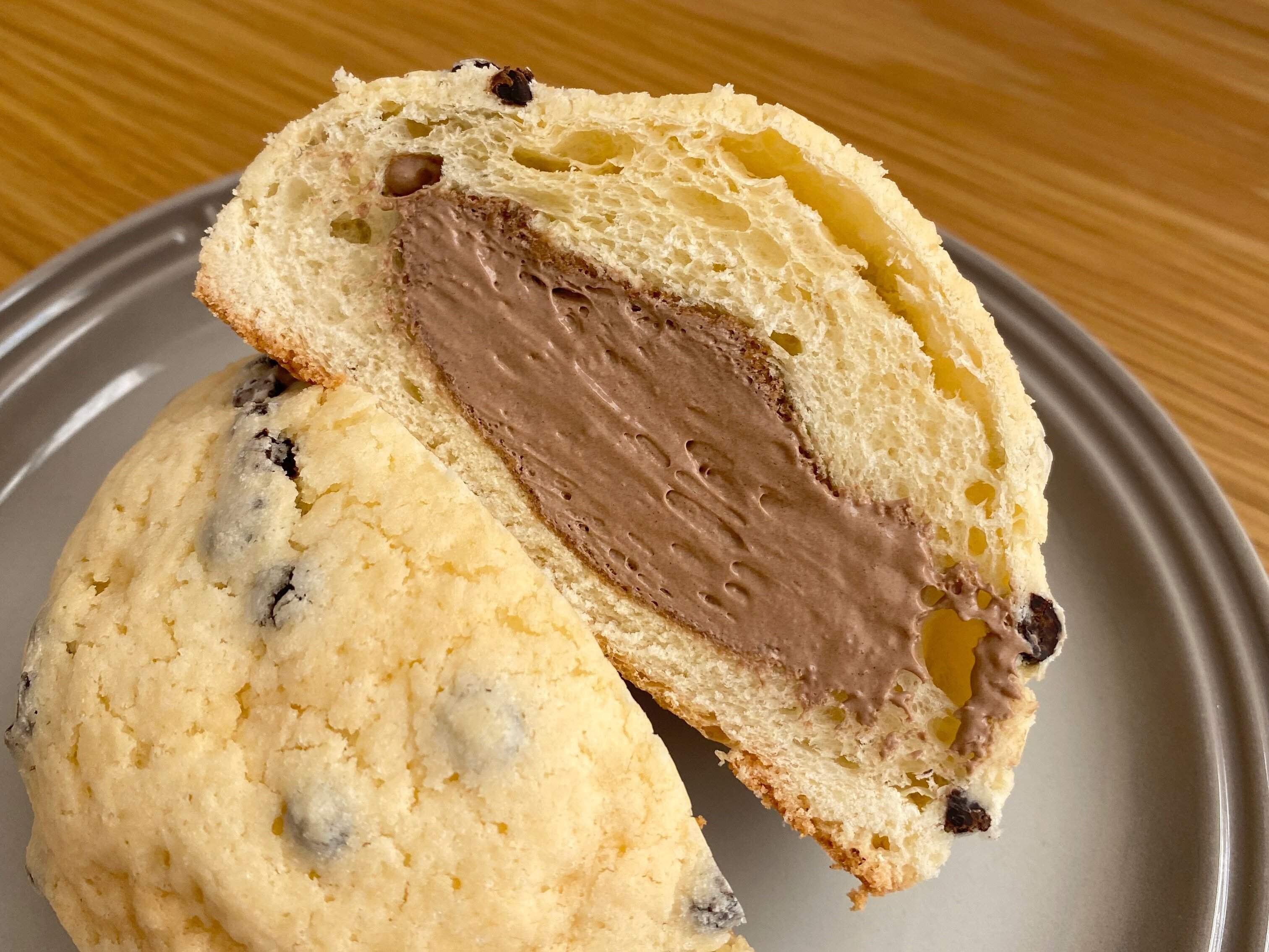 パン生地はふわふわでシンプルな味、クッキー生地はしっとりしていて、混ぜ込まれたチョコチップのゴロゴロ食感がアクセントになっています。