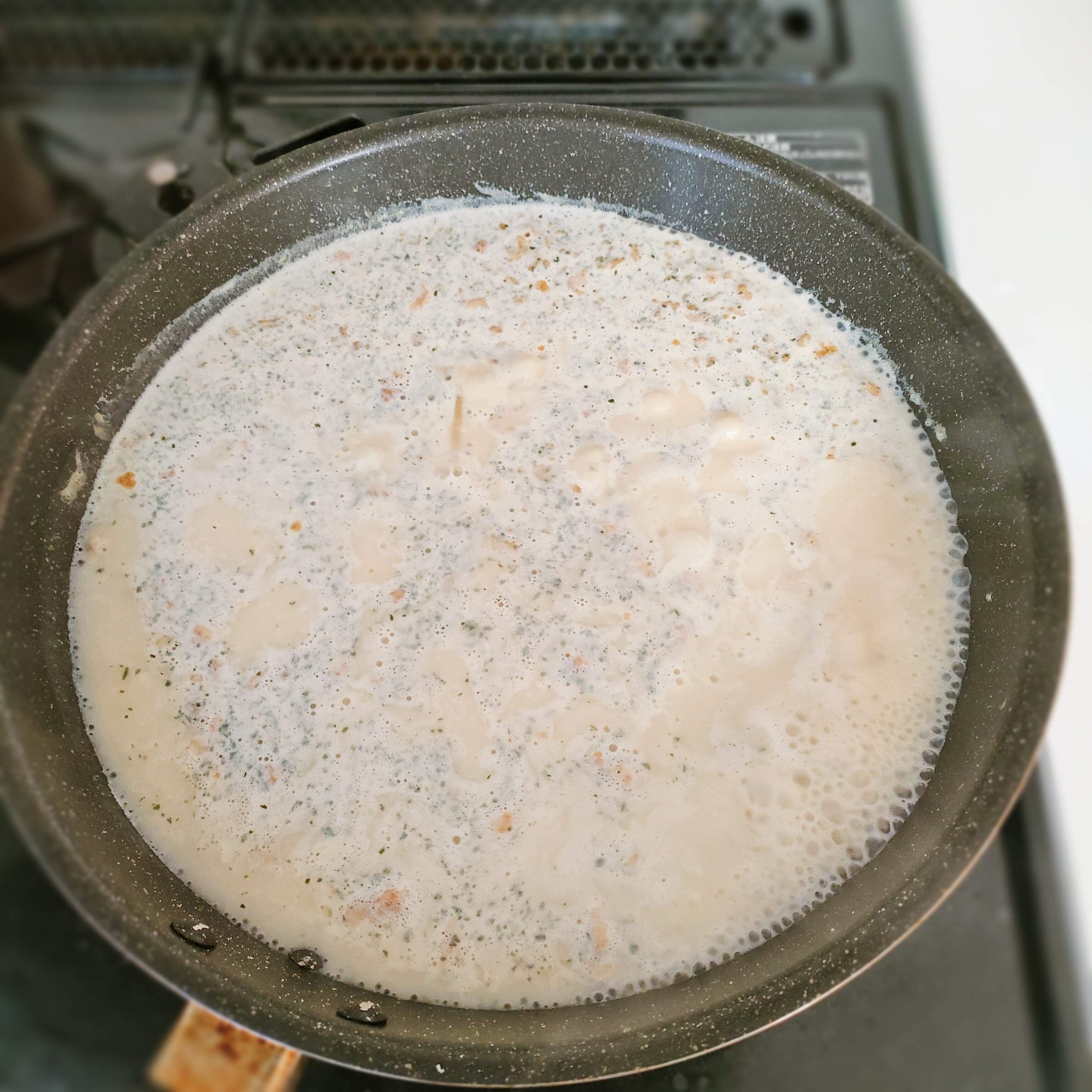パスタについている粉末がさっと溶けて、あっという間にクリーム状になりました。