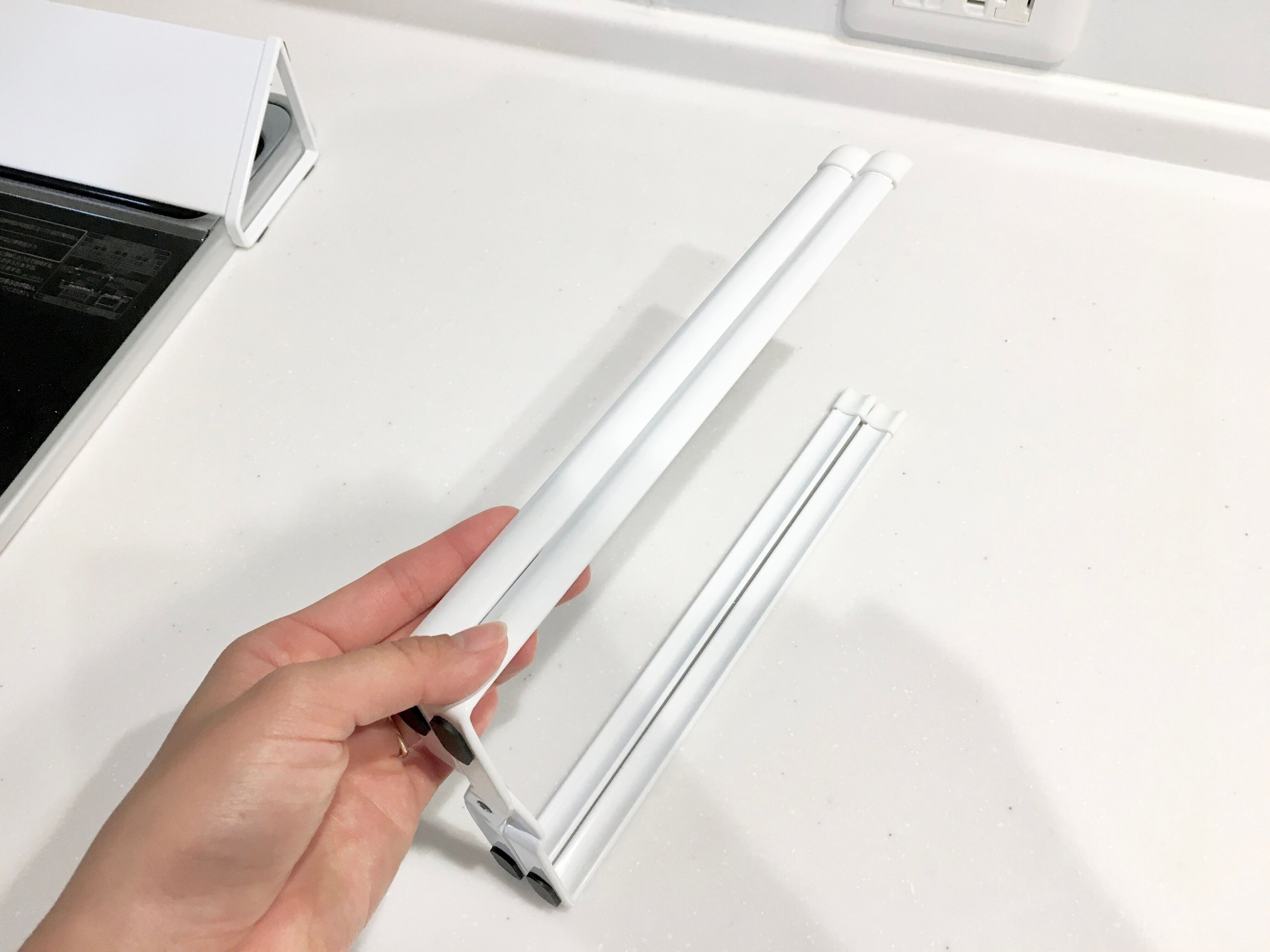 常に何かしら干しているのでしまう頻度は少ないですが、キッチンを広く使いたいときに折りたたんで置いておけるのはうれしいポイントです。