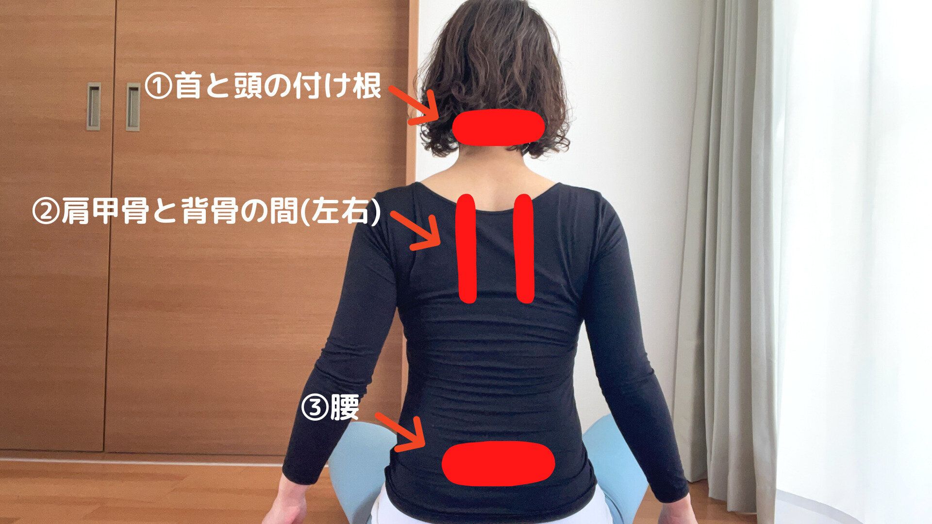 上記3ヵ所をメインにあてて仰向けに寝ていきましょう。