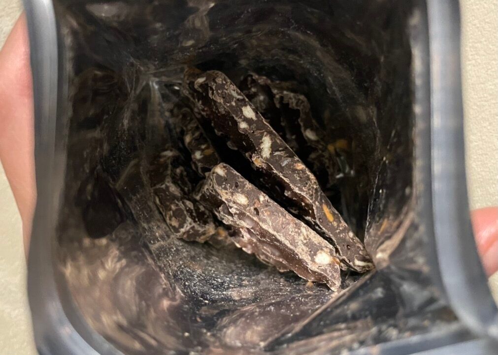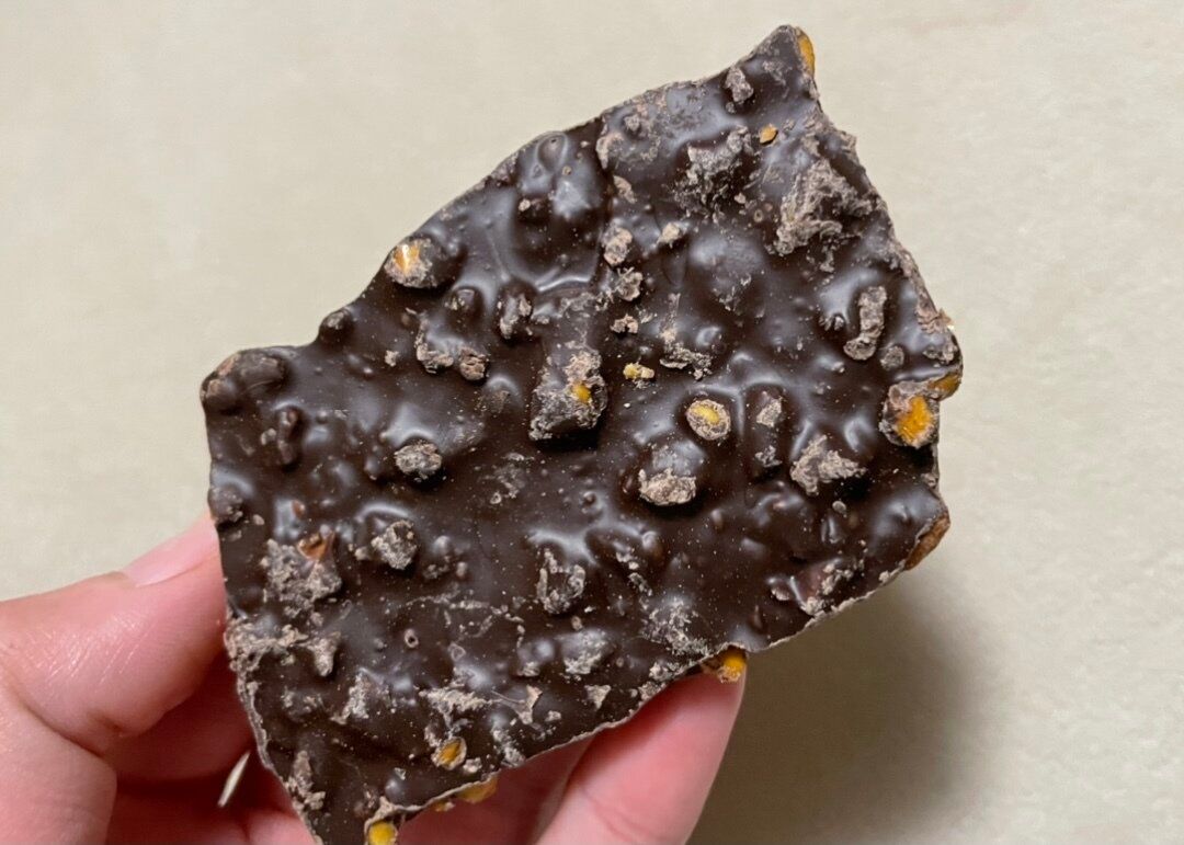 かじるとバキっと割れるダークチョコレート、思っていたより硬い…!ビターな甘みでザクザクとした食感のプレッツェルが香ばしいです。