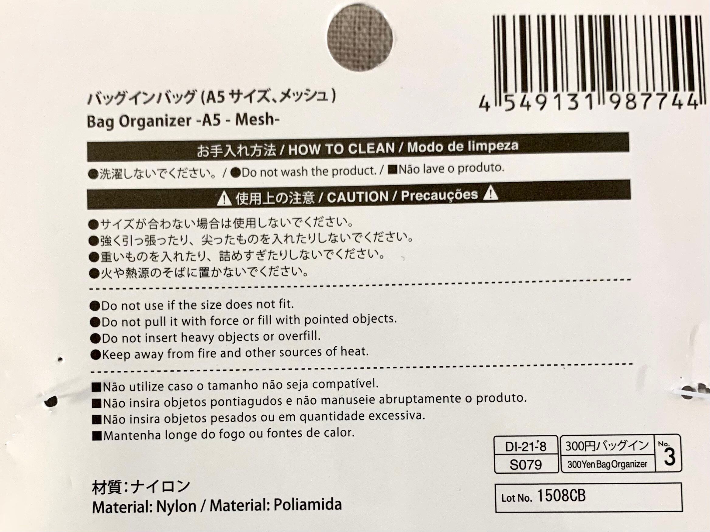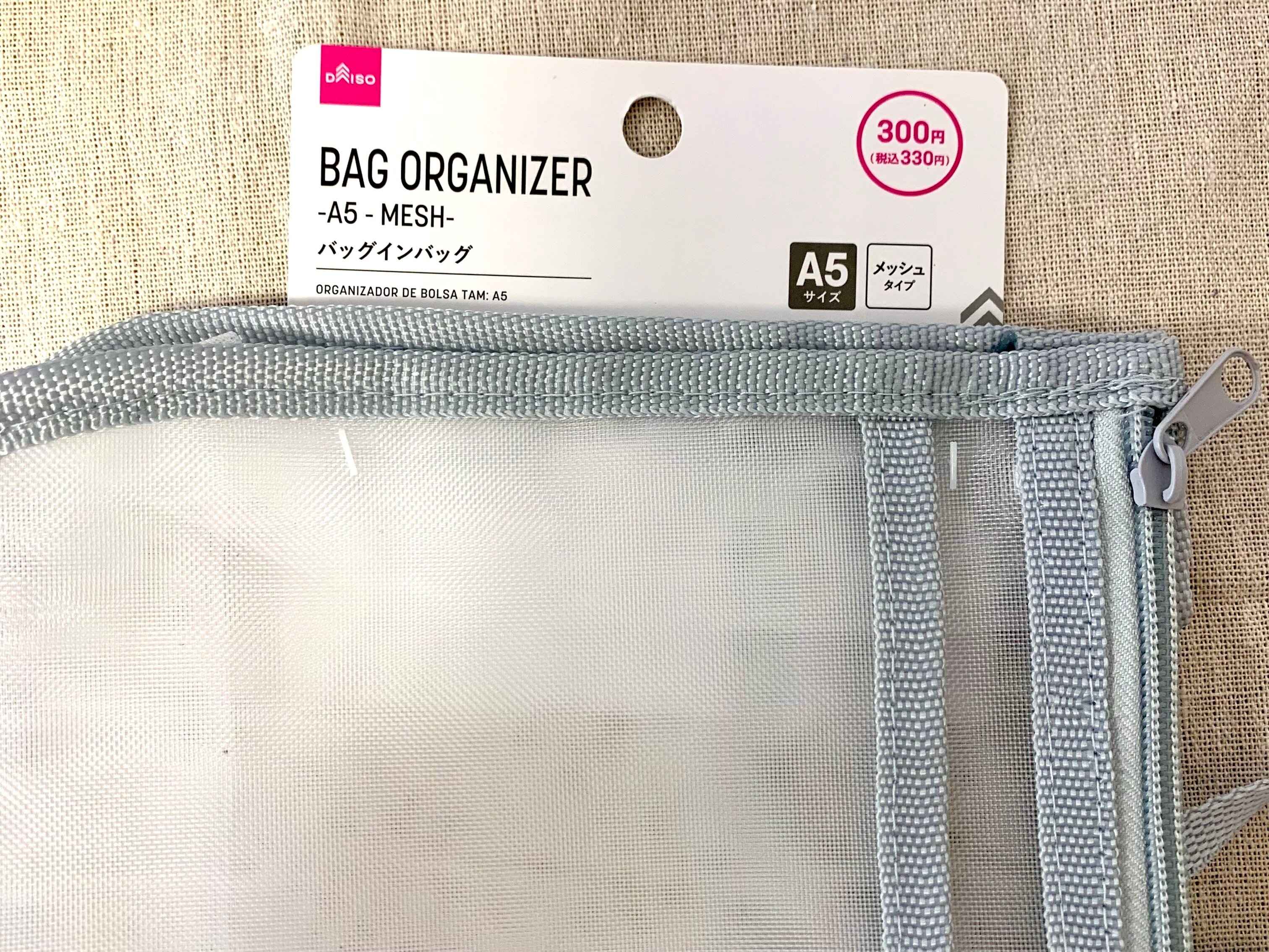 こちらのバッグインバッグ、330円ですが最高のクオリティです。