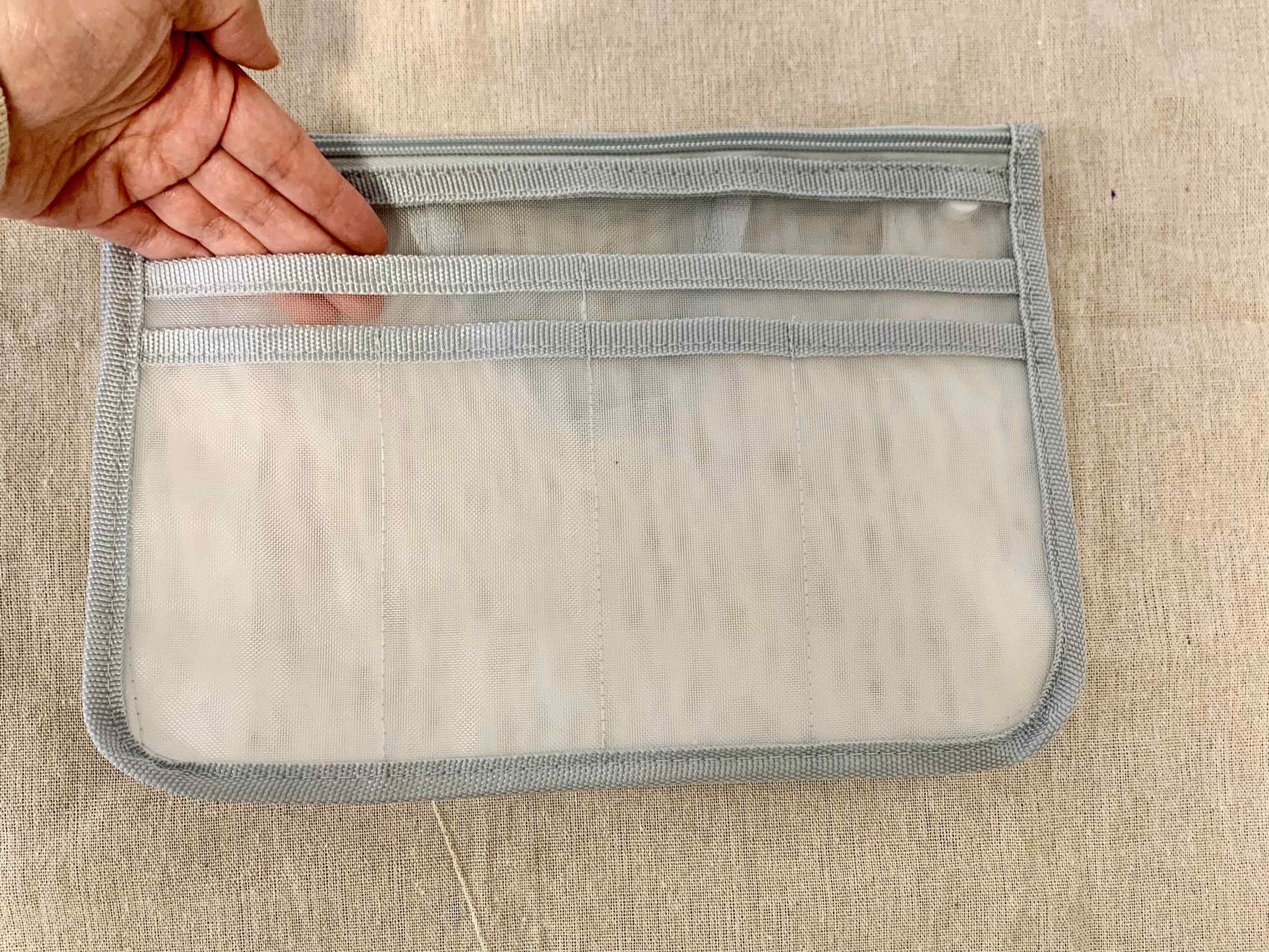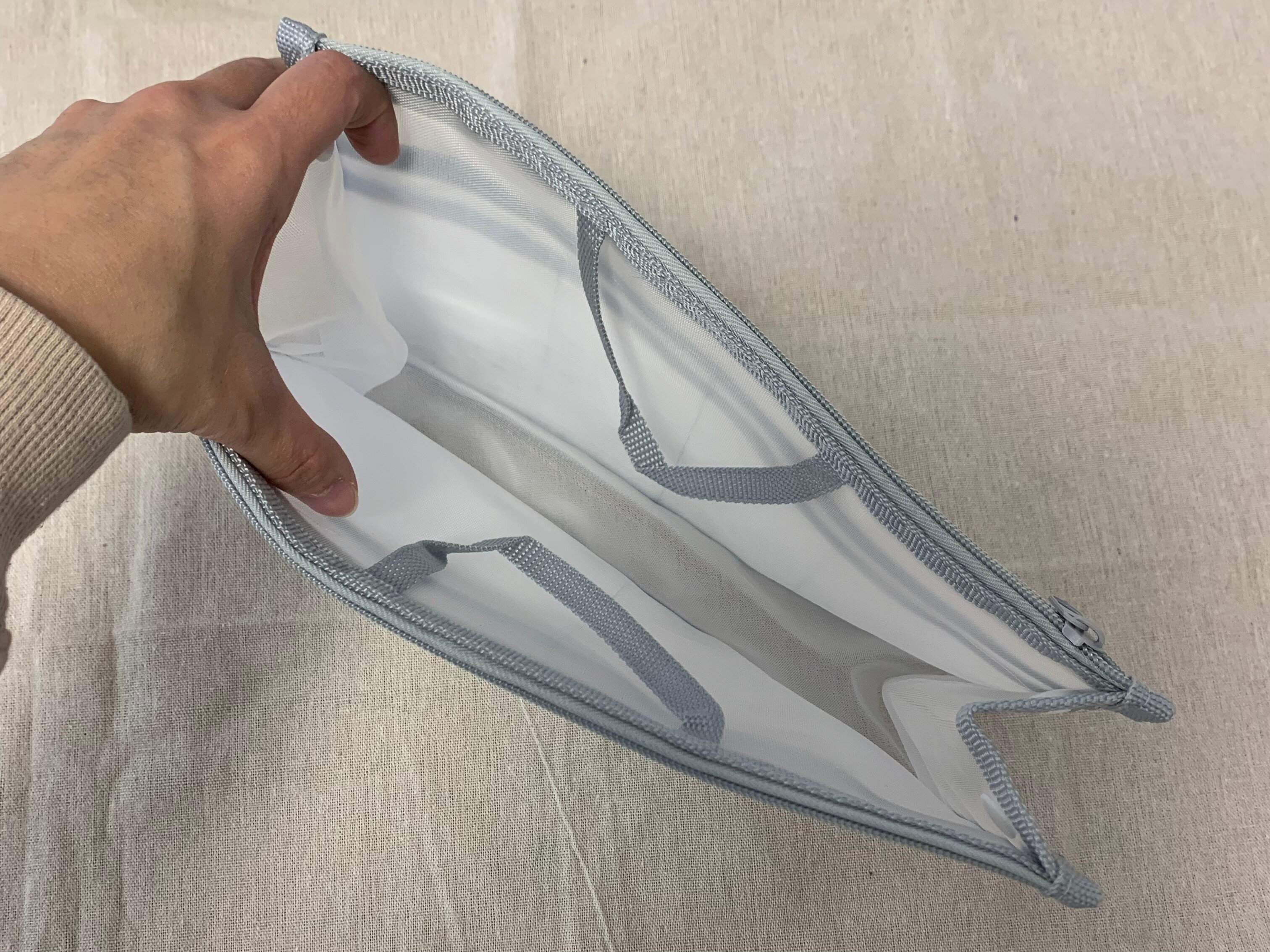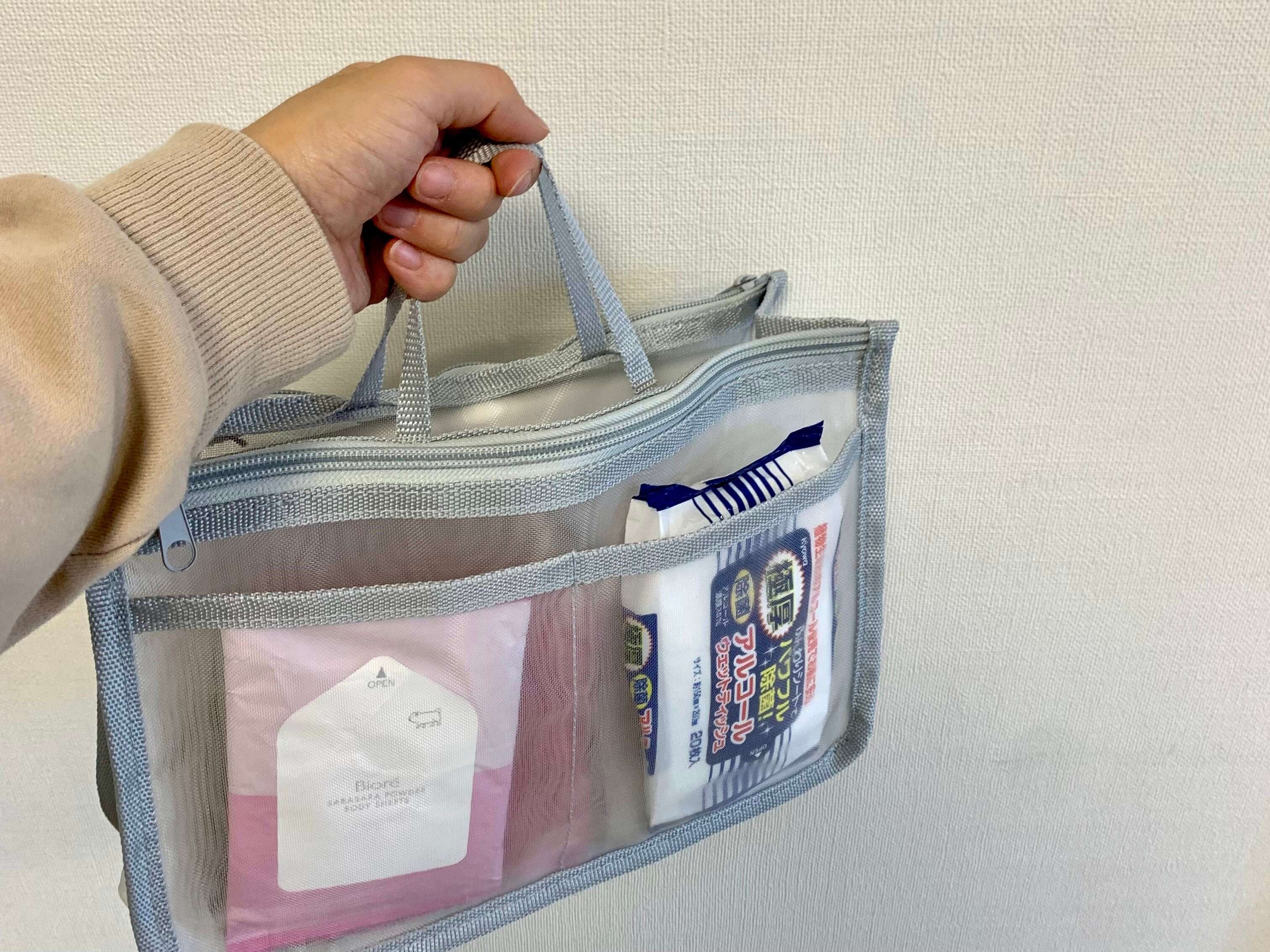 取っ手が付いているので、バッグを変える時もこのまま入れ替えればOK。とても楽ですね。