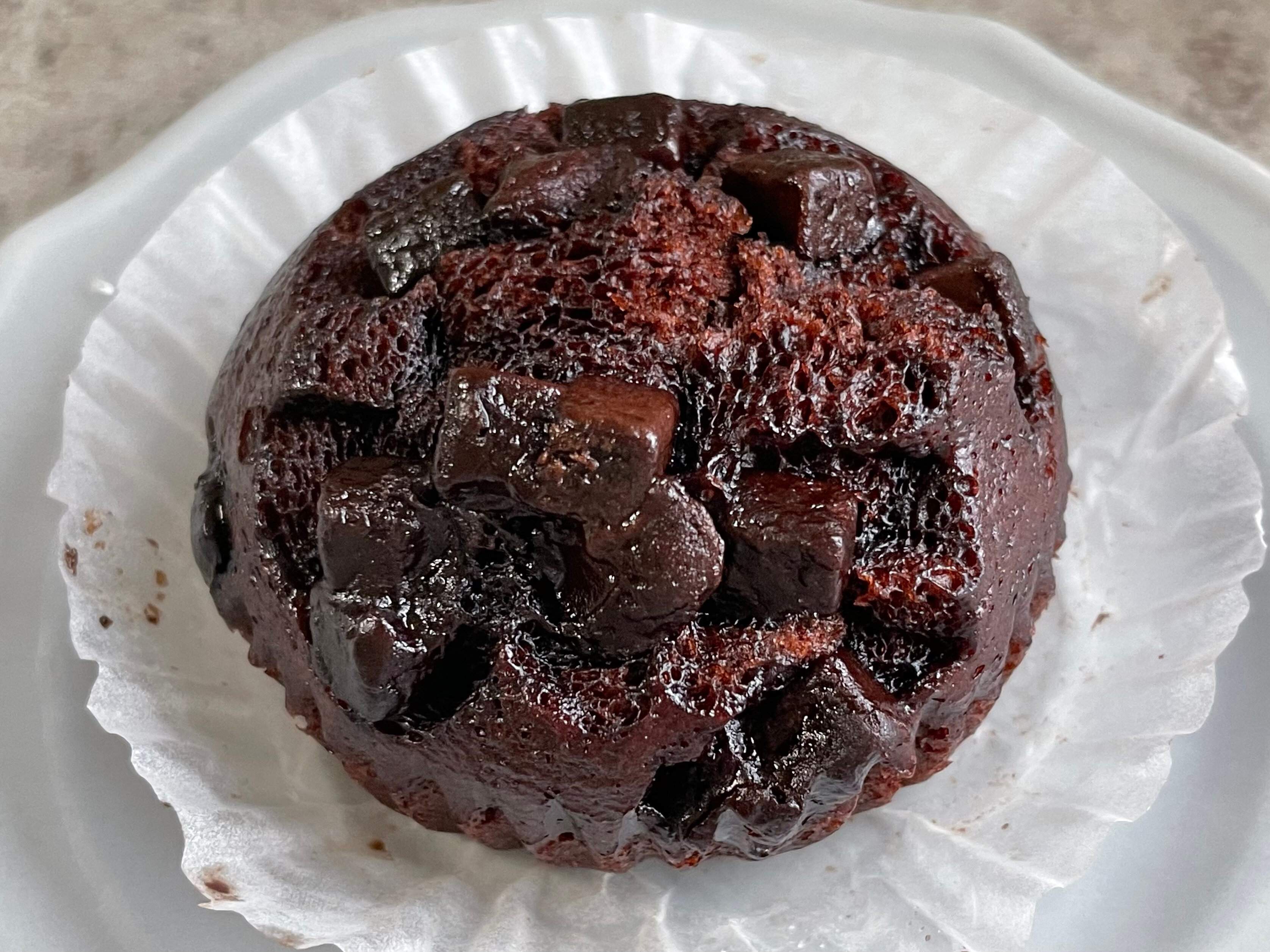 カカオ風味豊かなもっちりとした食感のチョコ生地に、ダイスチョコがごろごろとトッピングされています。個体差があるとは思いますが、ダイスチョコはパッと数えただけで10個ありました。