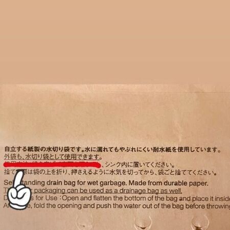 三角コーナーの代わりになる自立する紙製の水切り袋です。