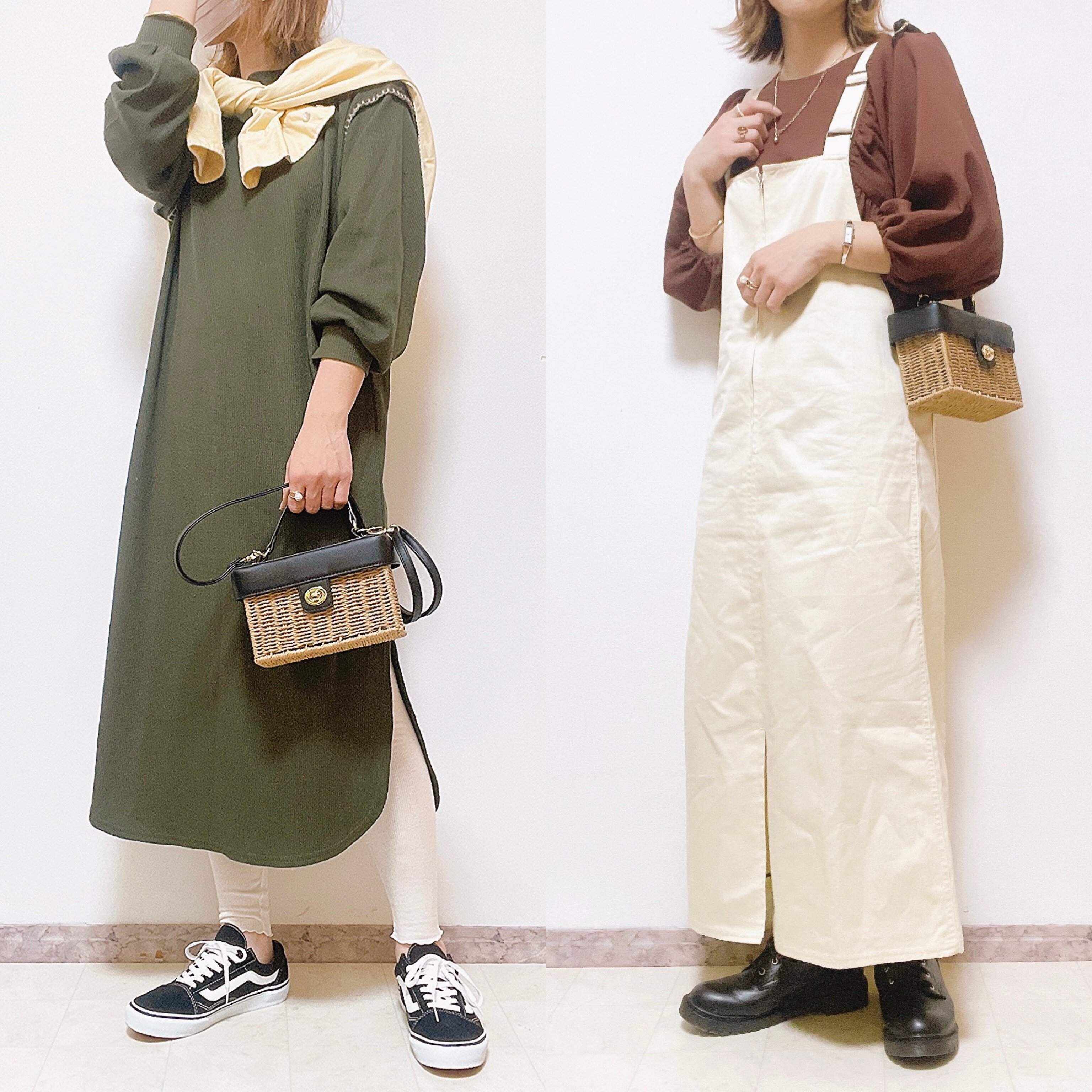 ミニマムなサイズ感がカジュアルコーデに「大人かわいい」テイストを加えてコーデを格上げ。靴とかごバッグの色味を合わせるとコーデに統一感が出ますね。
