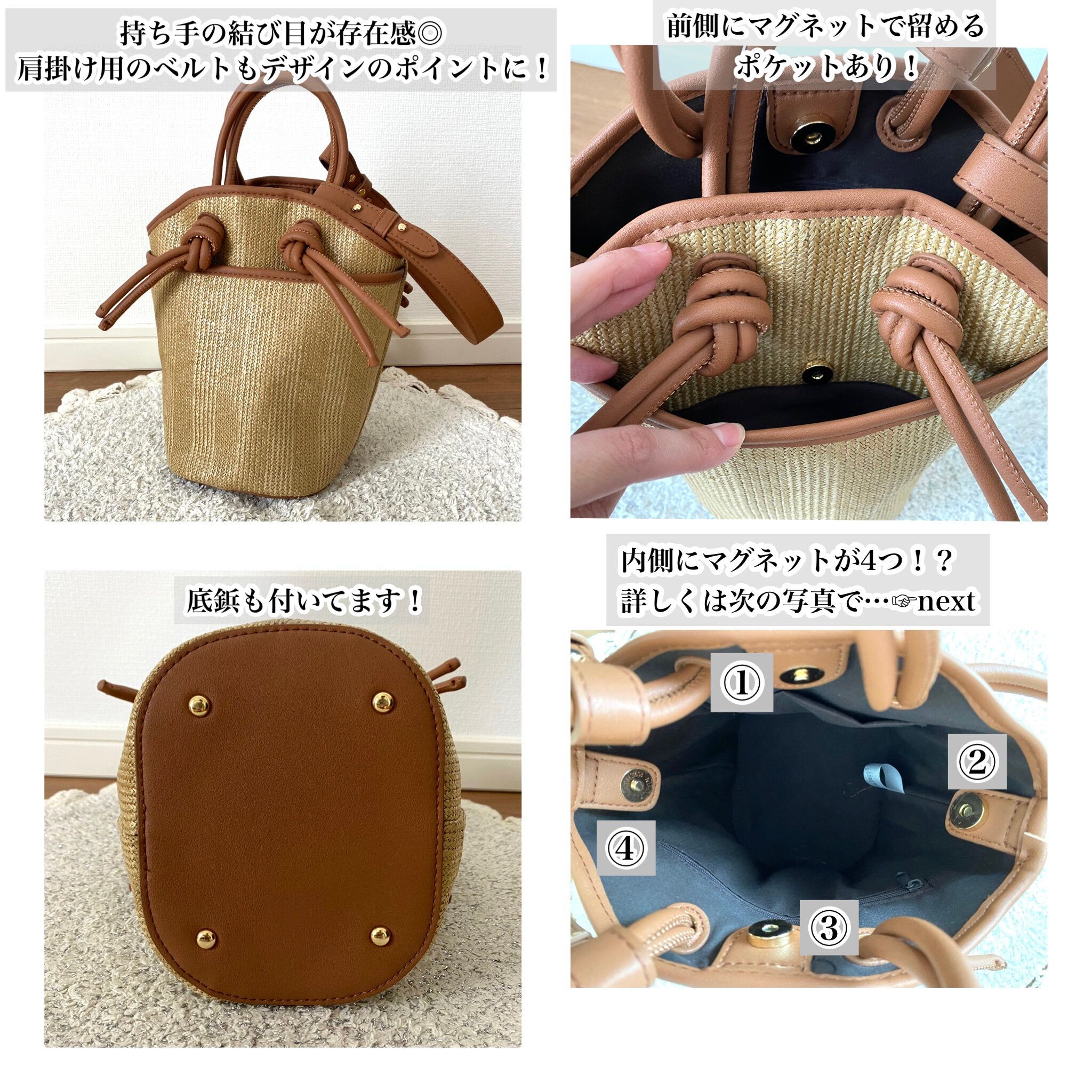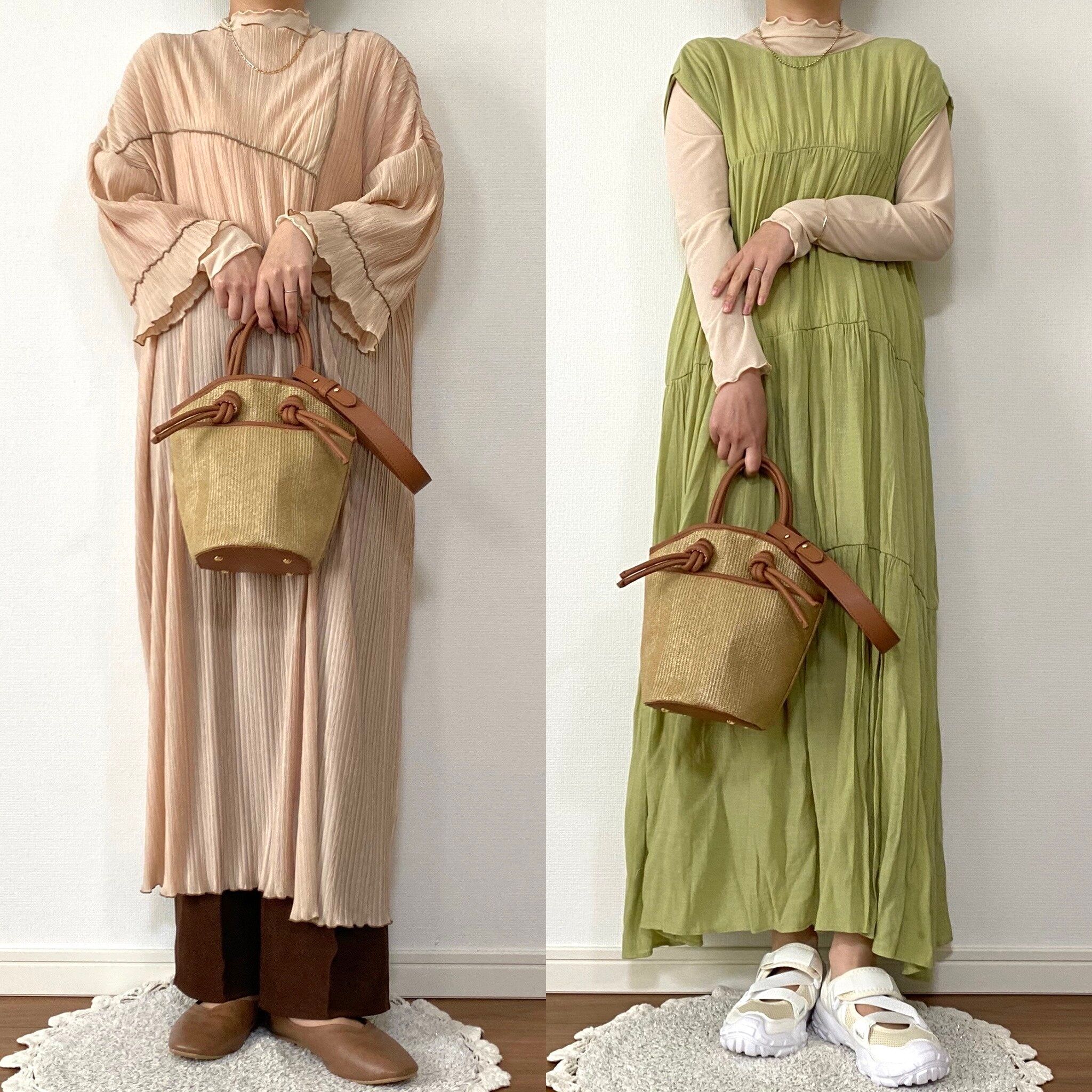 これから増えてくるであろうサンダルやスニーカーコーデにも合わせやすく、春夏コーデに大活躍間違いなしのカゴ風バッグです。