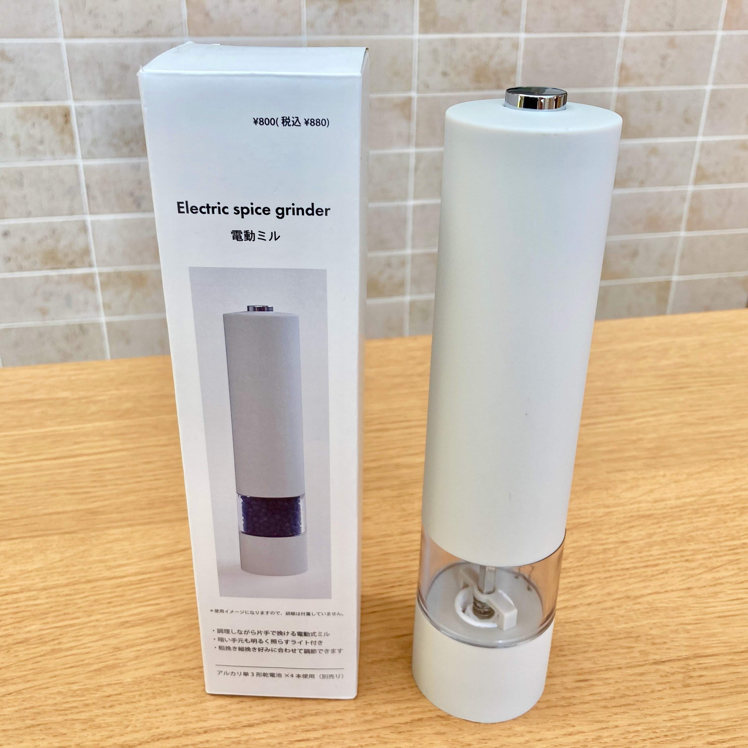 料理するときによく使う調味料のひとつに粗挽き胡椒があります。今まで手動のミルでその都度挽いて使っていたのですが、3COINSで電動ミルを買ってみたらそれはそれは便利だったので、私のように電動ミルを買おうかどうしようか考えているかたに向けて、紹介します!