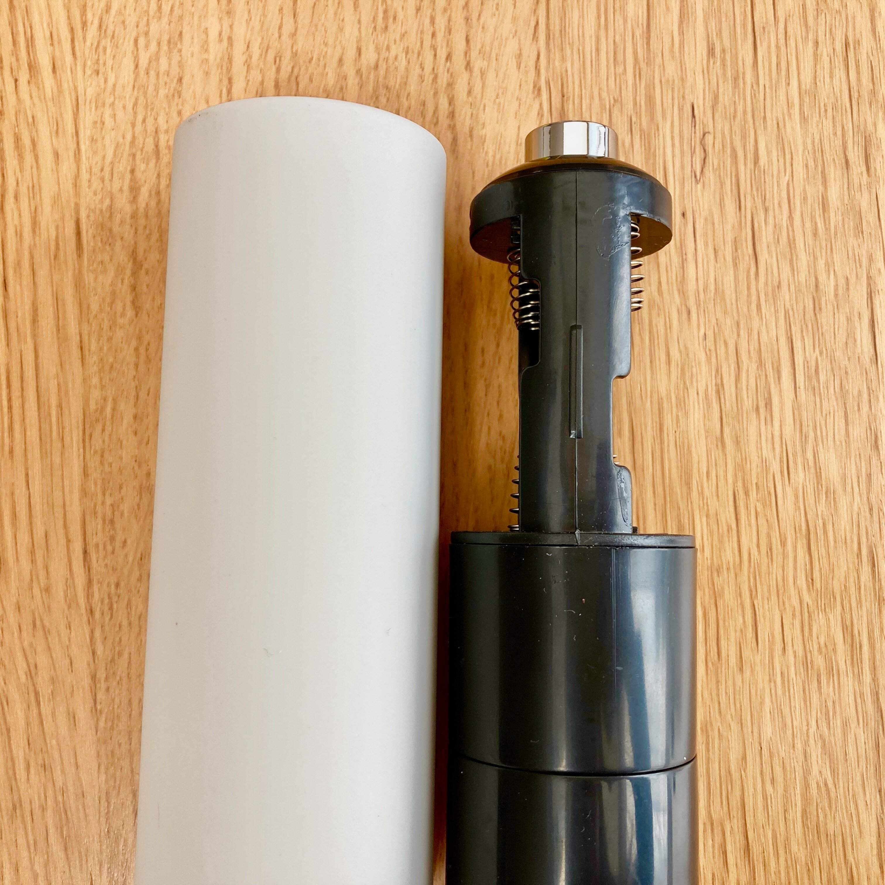 ミルのカバーを取ると上部は電池を入れる部分があり、電池は単三電池4本です。下のスパイスを入れる部分はさほど多くはないですが、頻繁に補充しなくてもよさそうなくらいには量が入ります。
