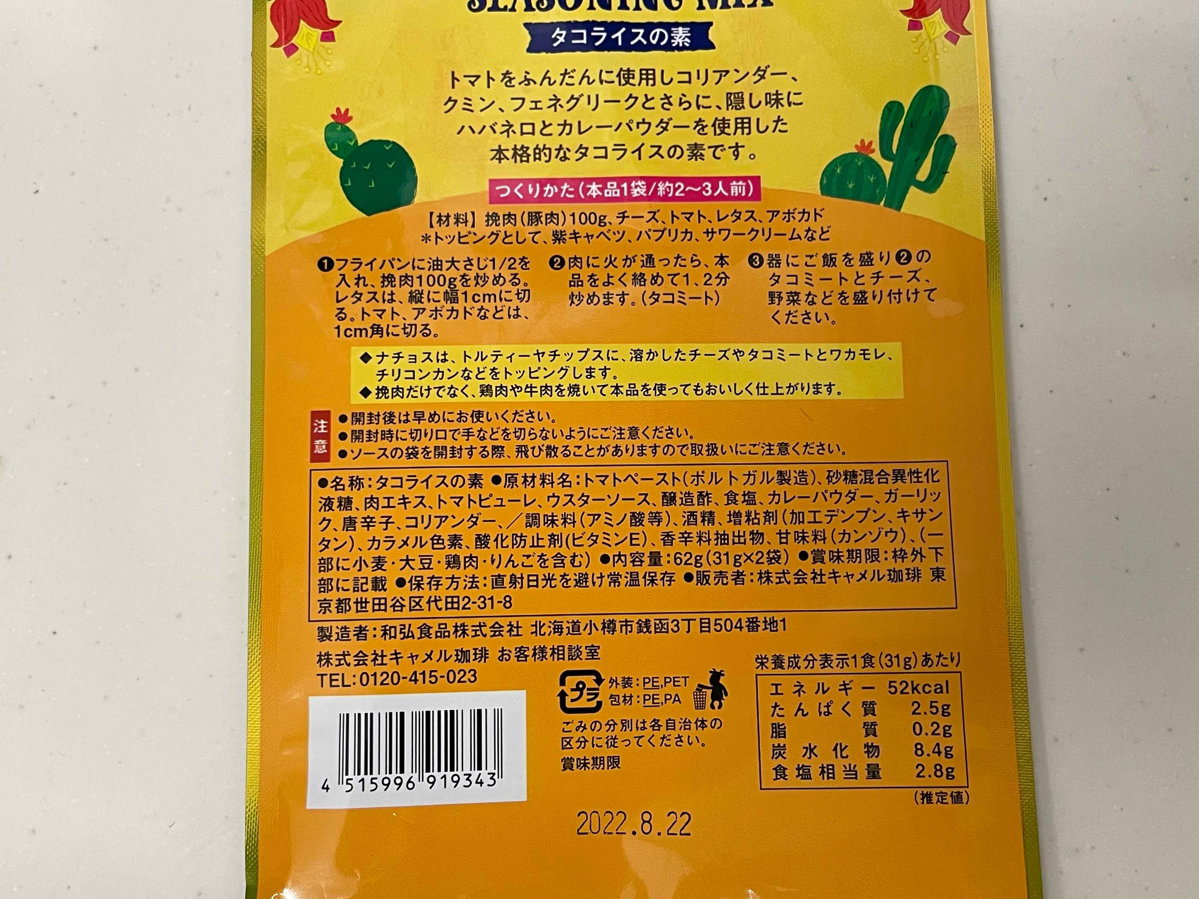 こちらがカルディで見つけたタコライスの素です。