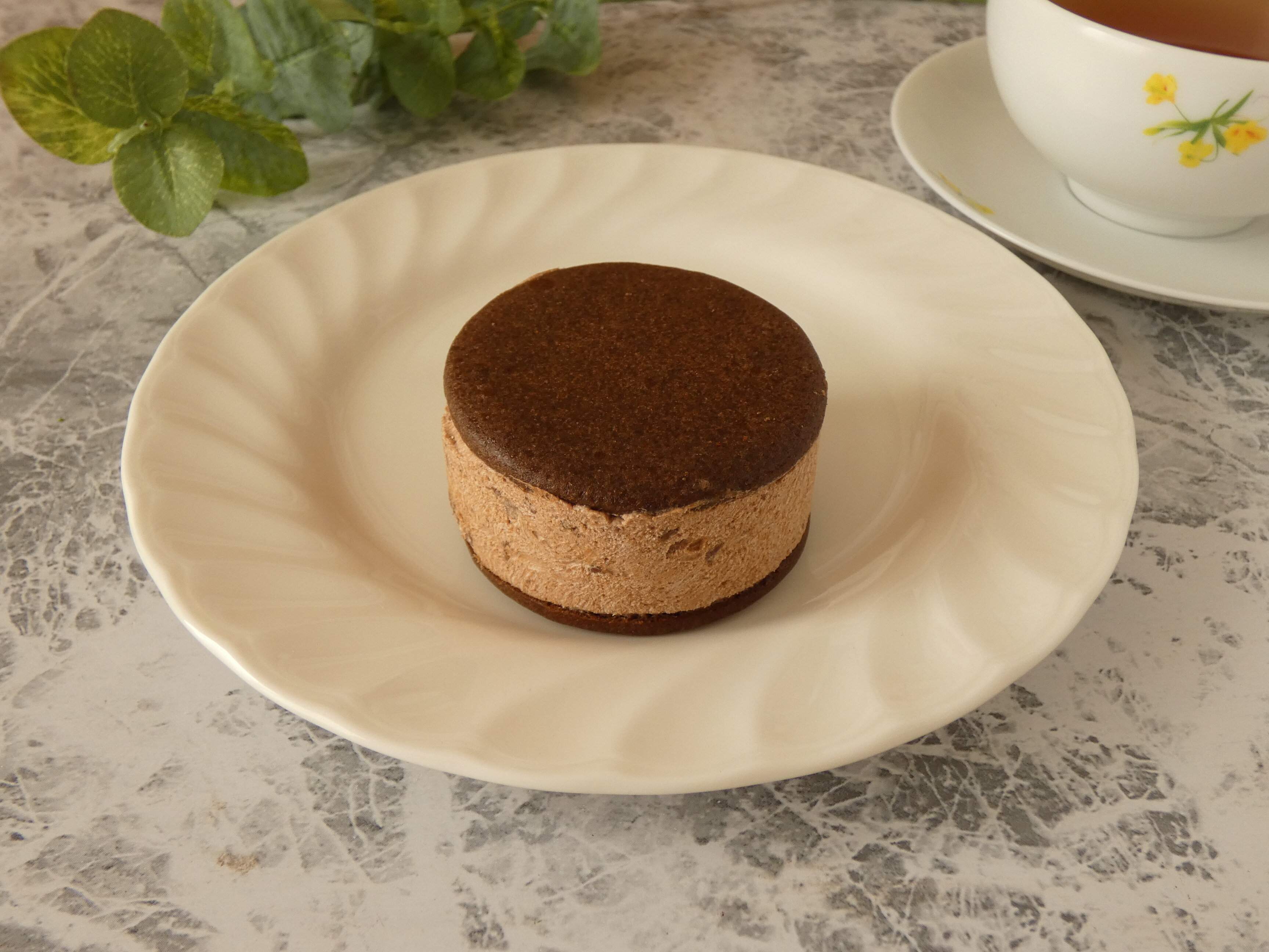 カットするとホロホロとくずれるビスケットに、ふんわりとしたクリームがぎっしり。ビスケットはココア生地で、食べるとバターの香りが最初に感じられます。くずれる度に広がる香りがたまらない!