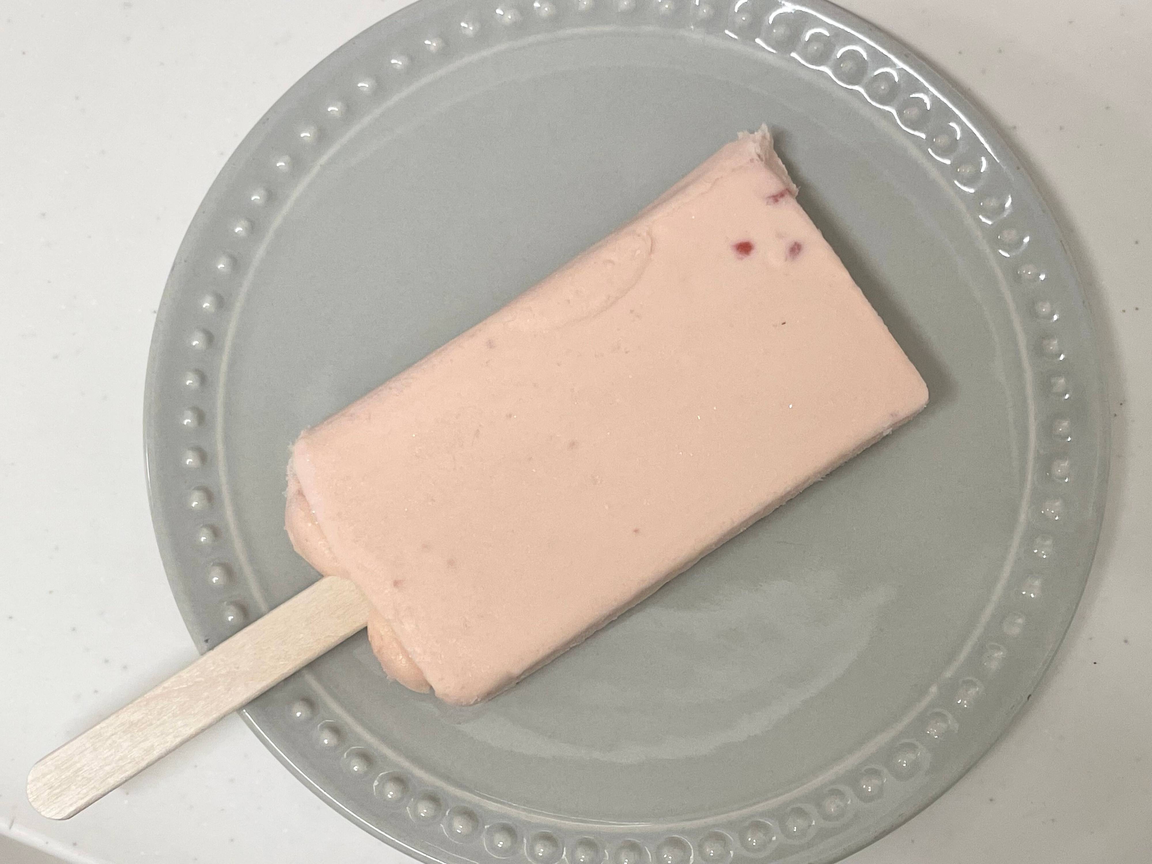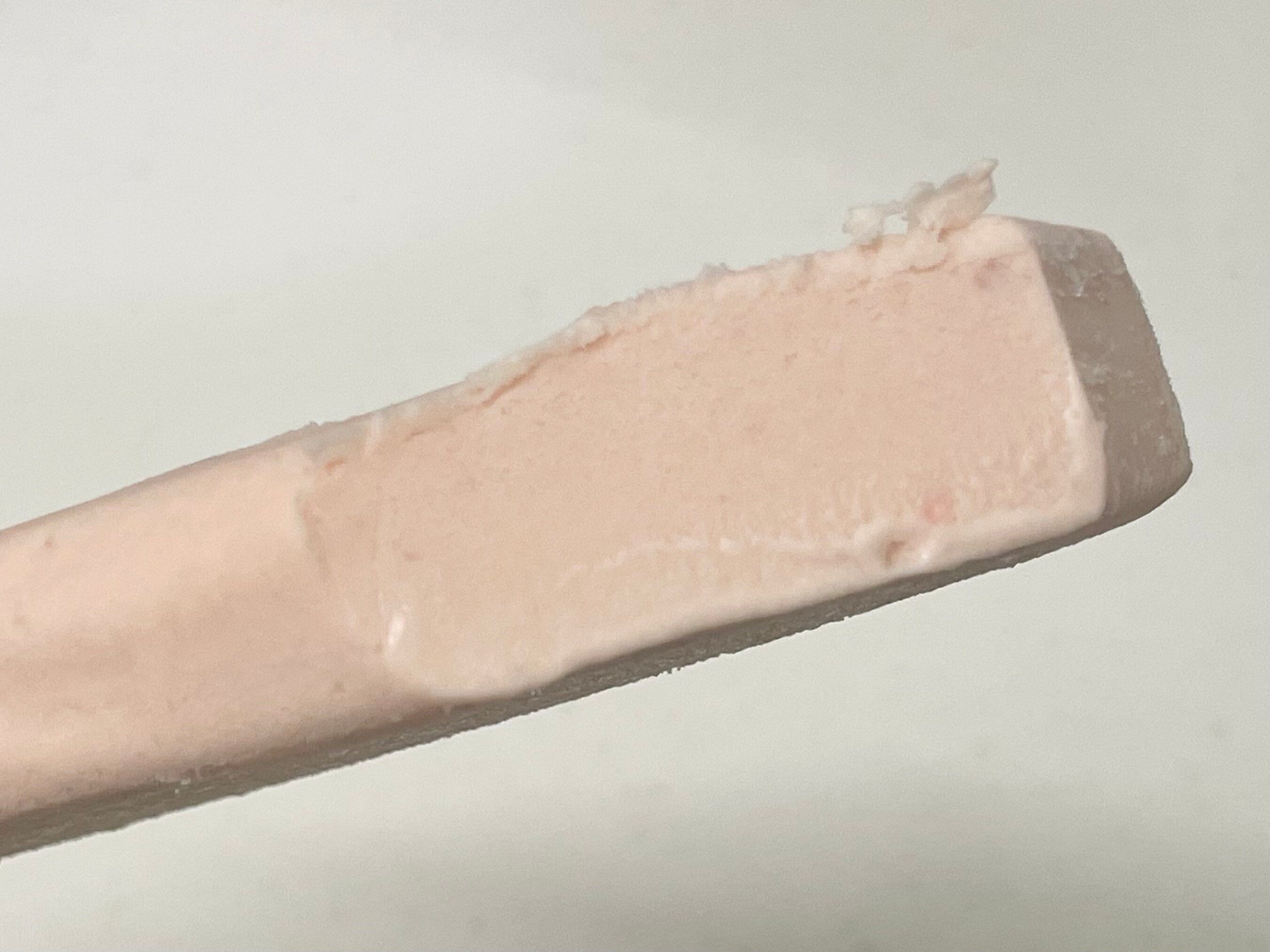 なめらかなくちどけで、いちごの果肉をたべるとじゅわっと甘酸っぱさが口に広がります。発酵バターの香りが後から入ってきてマイルドです。バターアイスとかいてあるのでもっとくどいかと思っていましたが、いちごの甘酸っぱさが勝っていて食べやすいです。