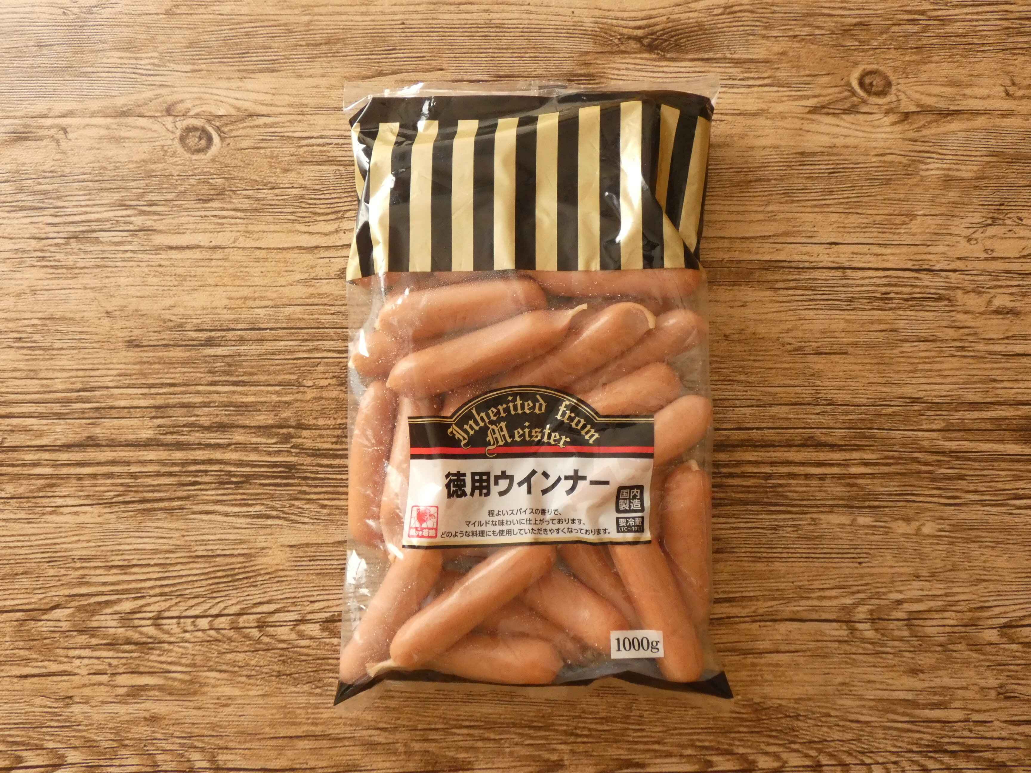 徳用ウィンナーは1,000g入りで473円。大容量で朝食やお弁当などにぴったりです。