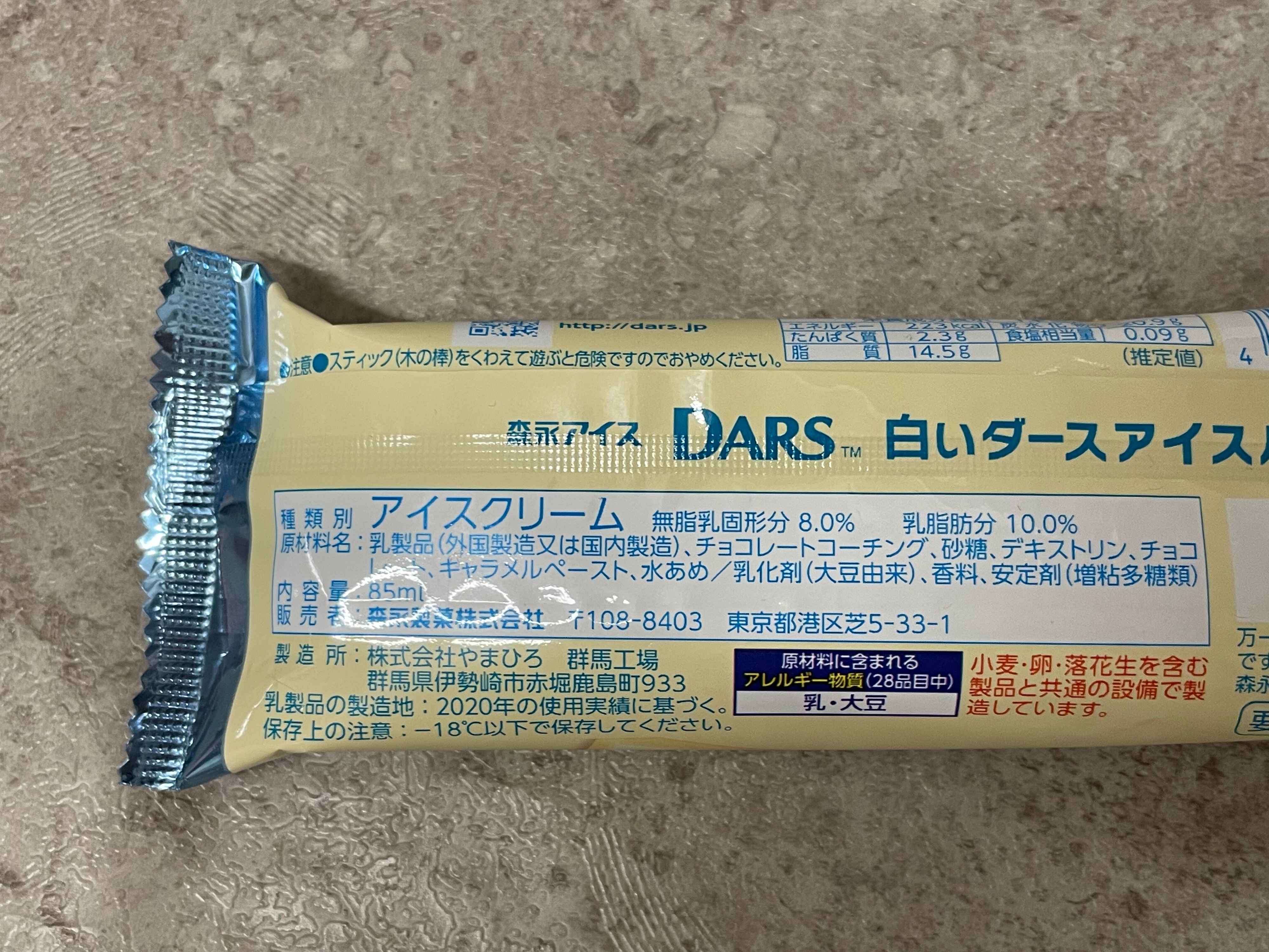 公式サイトを見ると、クリーミーなバニラアイスをホワイトチョコレートでコーティングし、コク深い味わいに仕立てた「白いダース」をイメージしたバーアイスなんだそう。